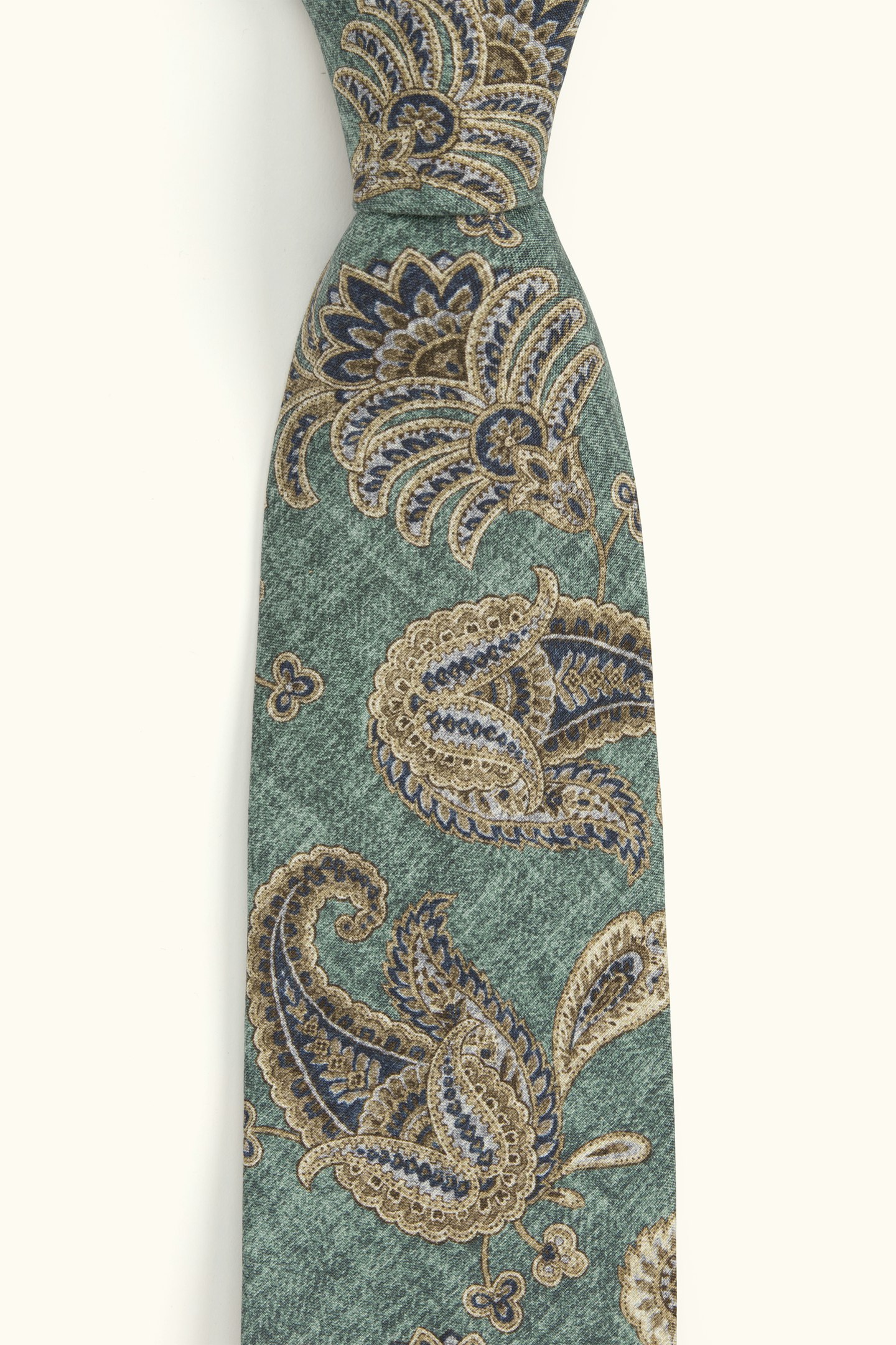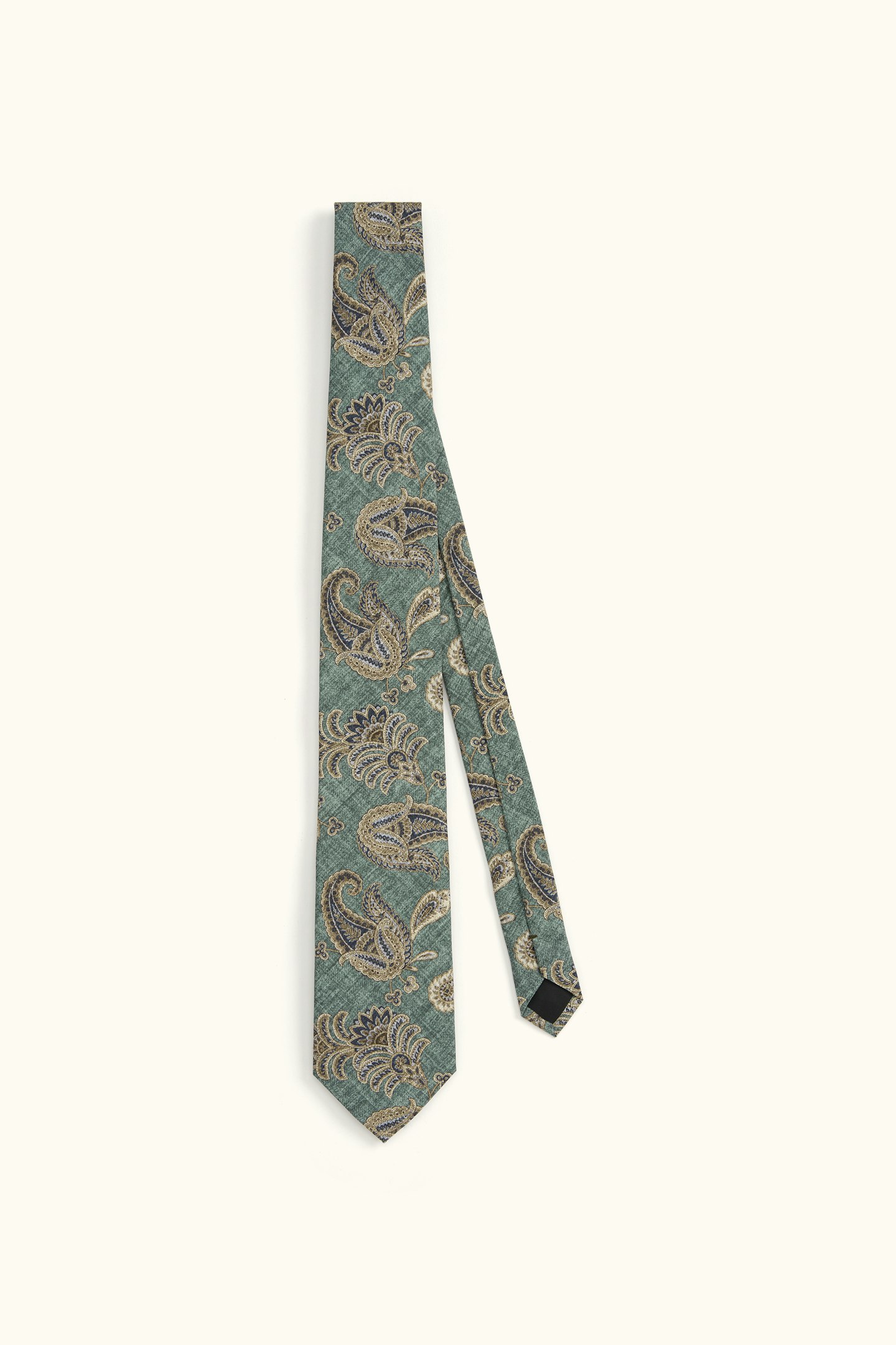 Et silkeslips med et klassisk paisley-mønster som gir karakter og dybde. Den vevde silke kvaliteten gir en myk glans og et sofistikert utseende. Et perfekt tilbehør for mer formelle anledninger.