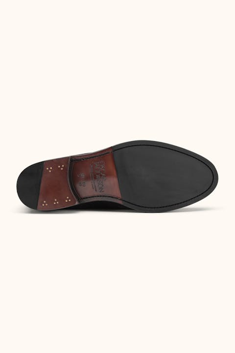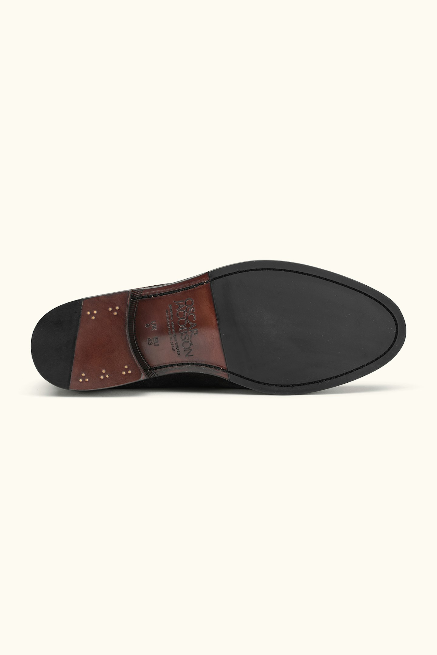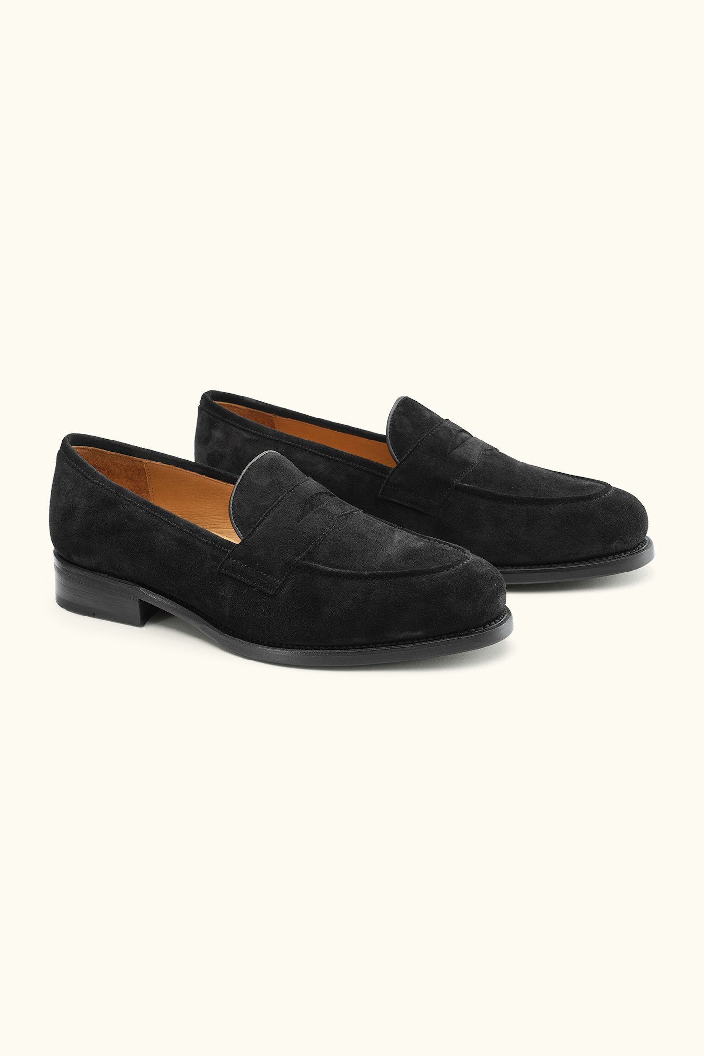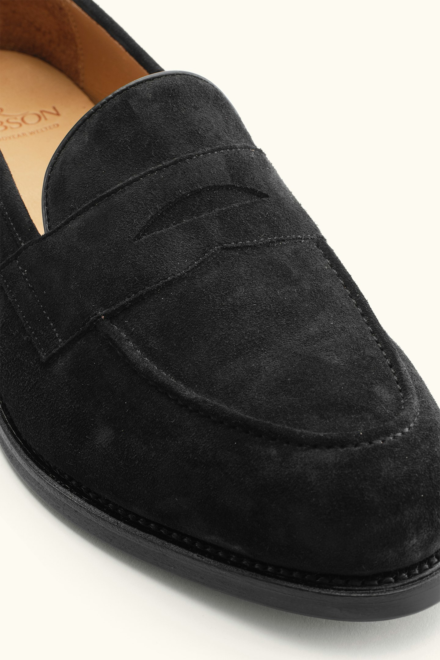Goodyear-randsydde Penny Loafers i luksuriøs semsket skinn, tilpasser seg formen på foten. Håndlaget i Spania. Vegetabilsk garvet lær såle med påført gummisåle for økt holdbarhet og bedre grep. Mykt polstret Memory Foam innersåle som former seg etter foten. Konstruksjonen tillater fremtidig ombytting av sålen for å sikre langvarig bruk, og med vår nye lærbindingssåle tåler skoene enda flere sålebytter.