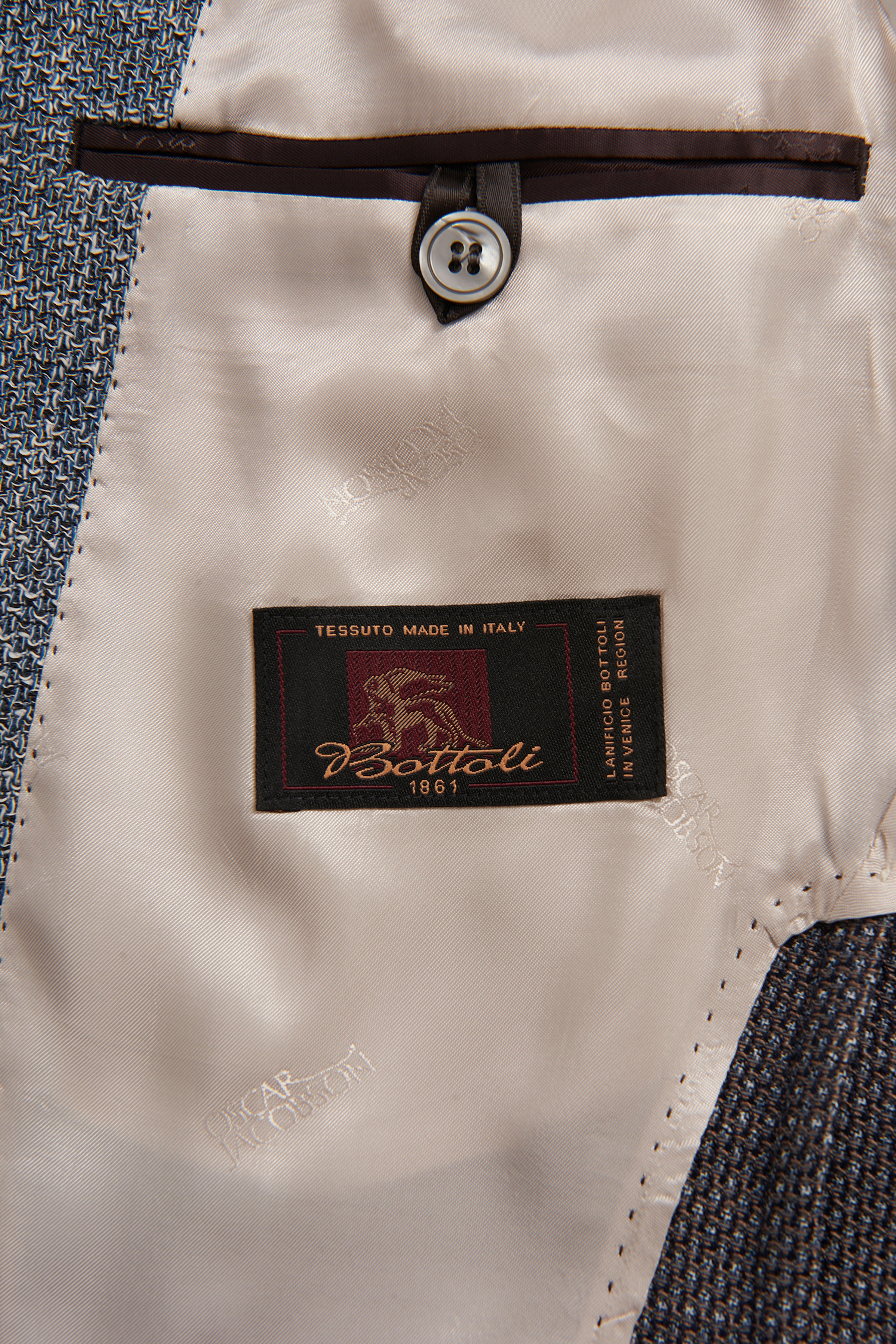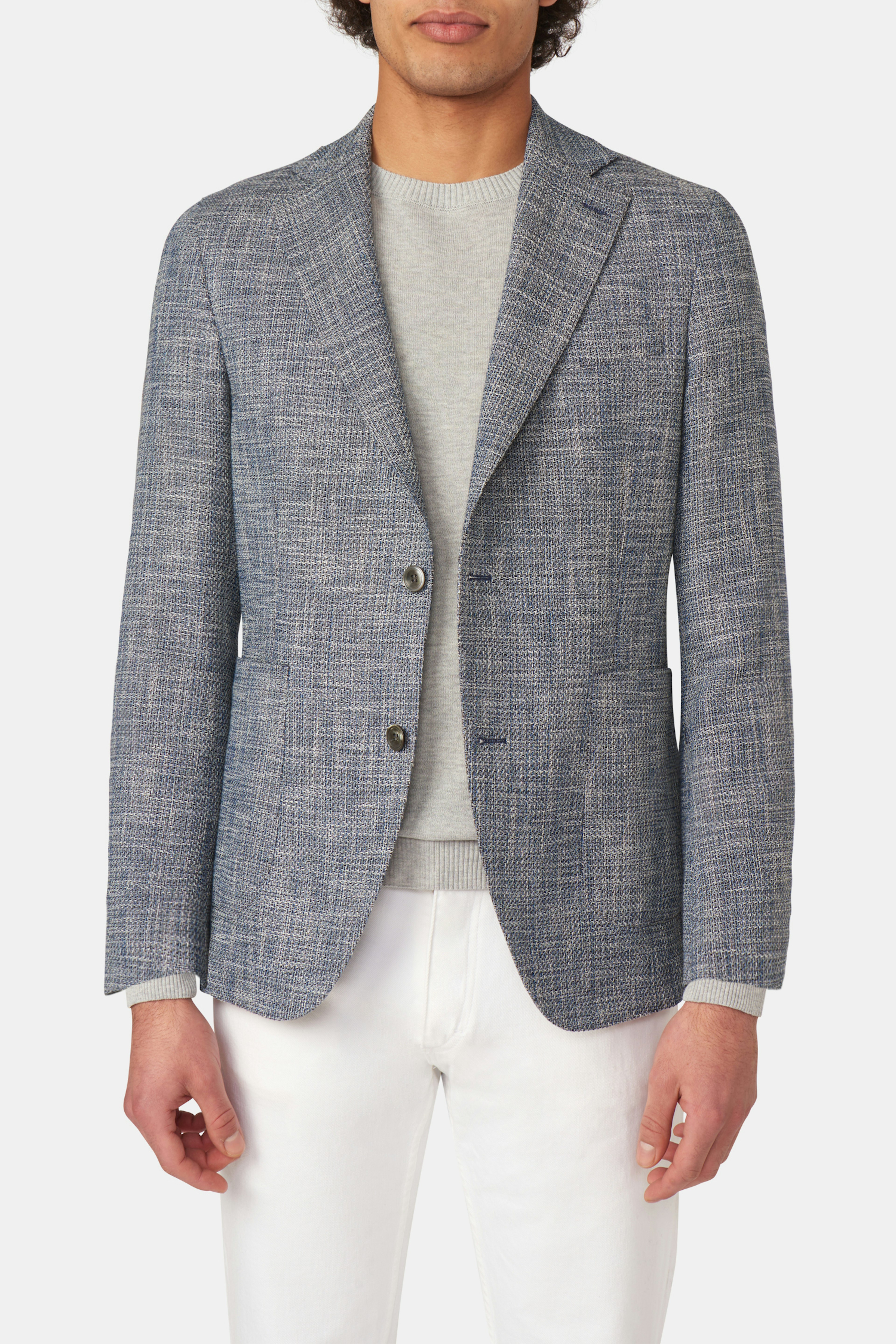Enkeltspent blazer med regular fit og myk skulder, brede slag, mykt konstruert og halvfôret. Laget av et luftig bomullsstoff fra italienske Bottoli.