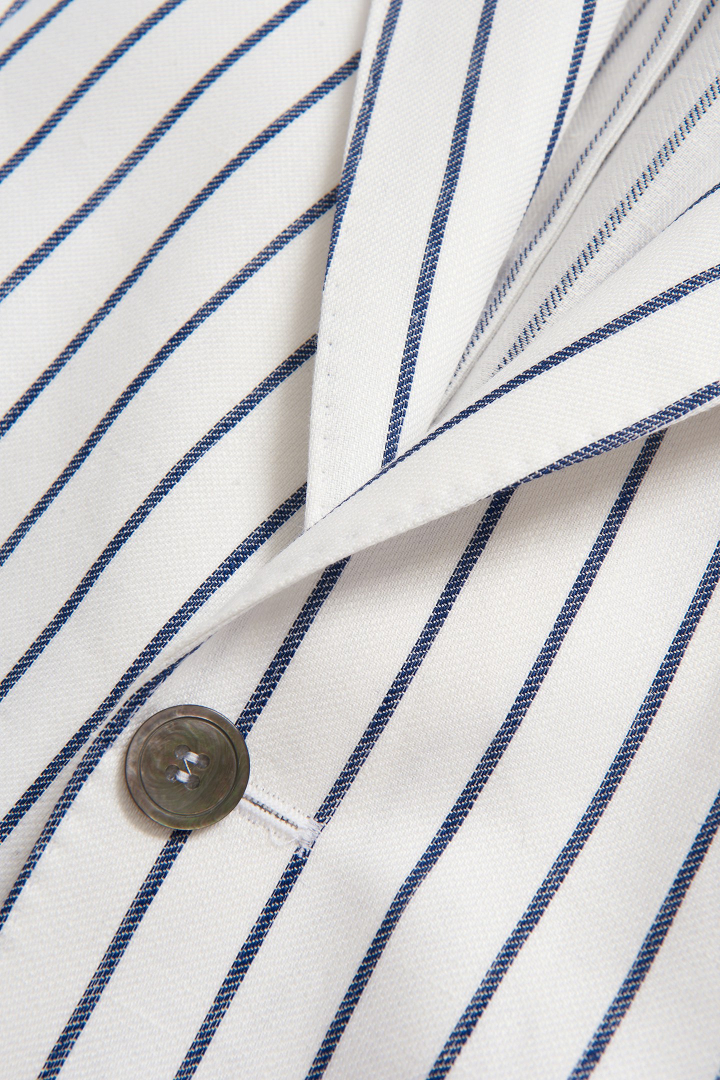 Enkeltspent halvfôret blazer med regular fit, en ukonstruert skulder og lommeklaffer. Laget i et lin- og bomullsstoff fra Lanificio di Pray.