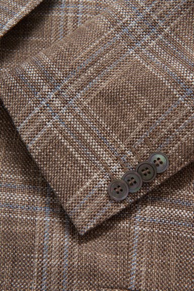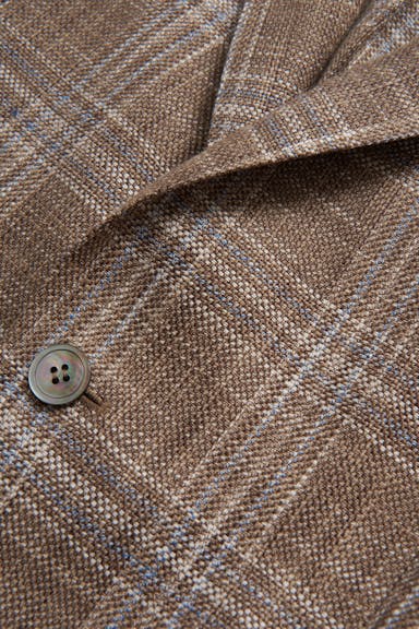 Enkeltspent halvfôret blazer i regular fit med en ukonstruert skulder og lommeklaffer. Laget av en bomullsblanding med lin og ull fra Guabello.