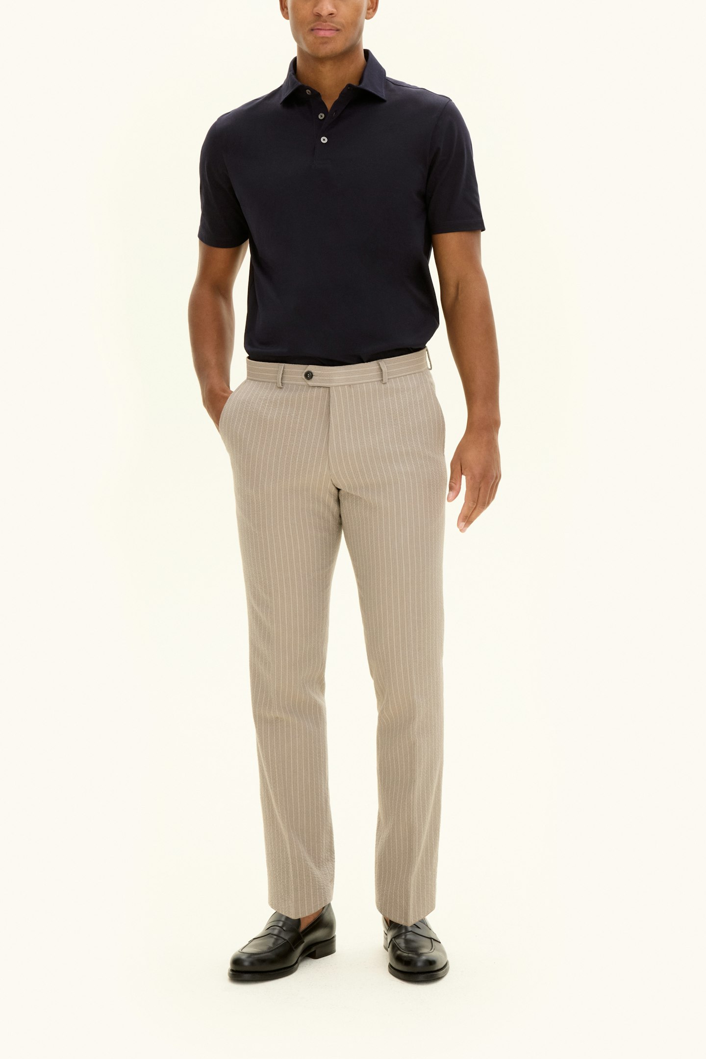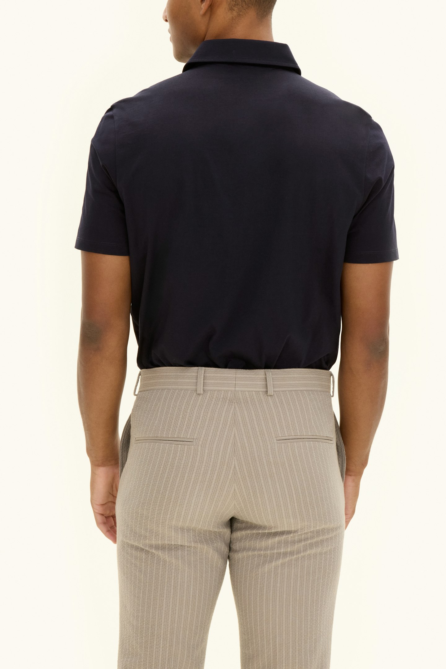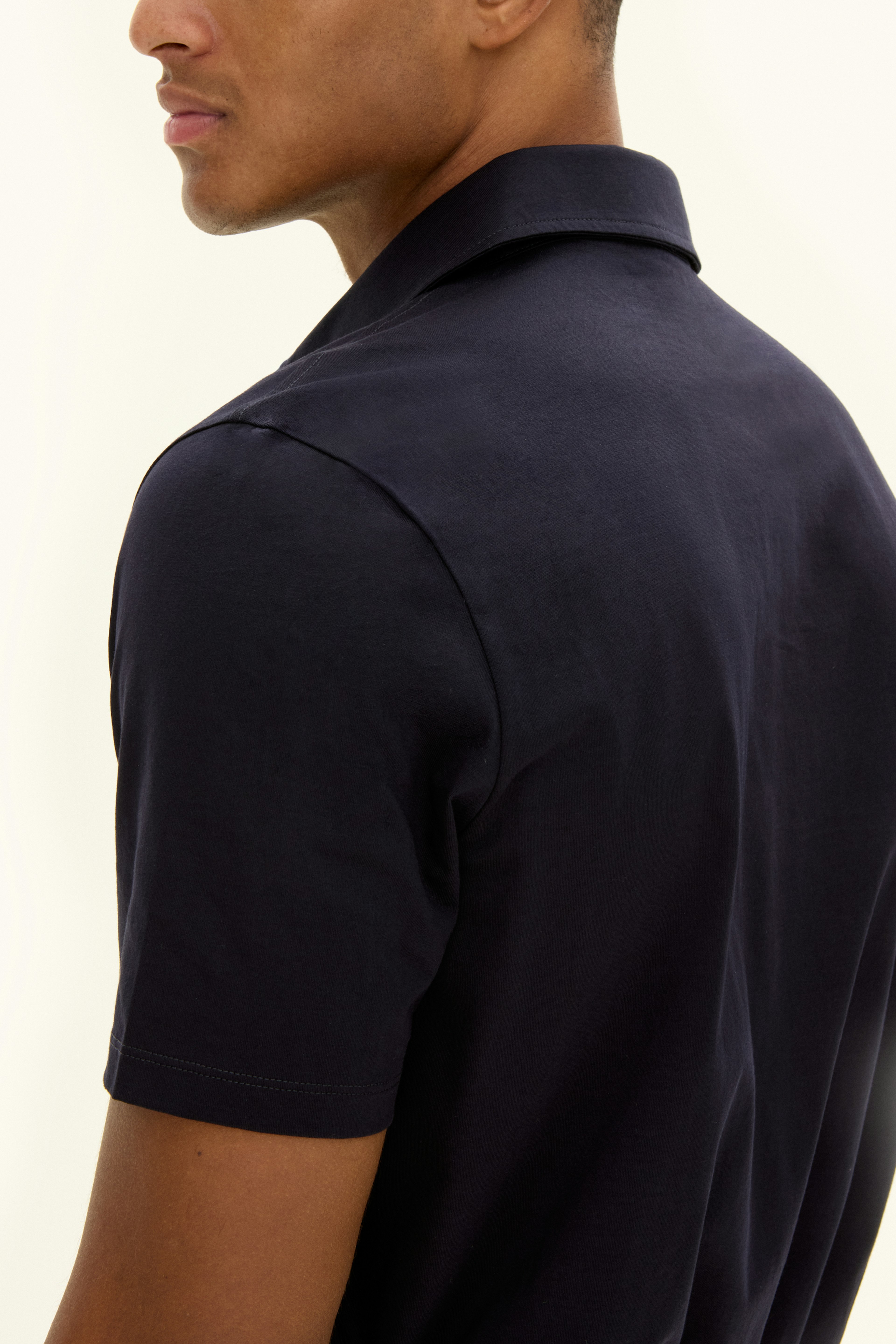 Kortermet piqueskjorte laget av bomullsjersey, med en krage med kragestolpe som gir et elegant inntrykk. Perlemorknappene fullfører plagget, som kan brukes både under en blazer og alene.