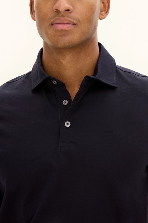 Kortermet piqueskjorte laget av bomullsjersey, med en krage med kragestolpe som gir et elegant inntrykk. Perlemorknappene fullfører plagget, som kan brukes både under en blazer og alene.
