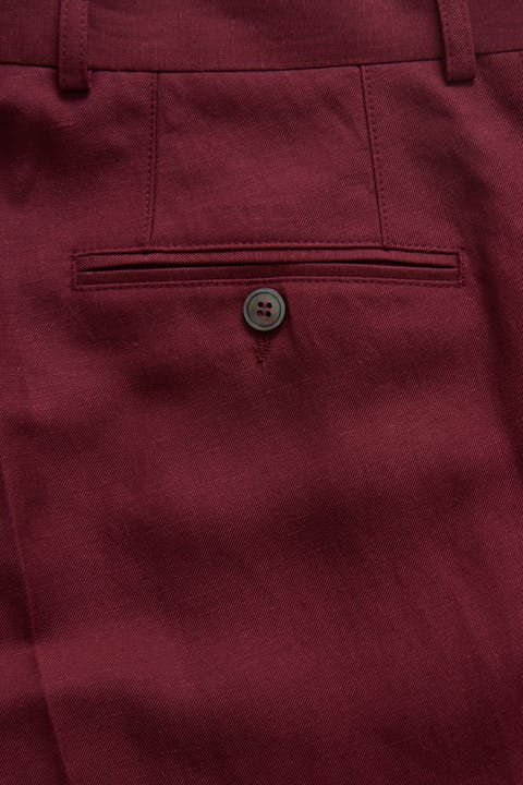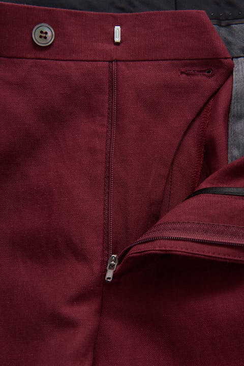 Bukser i en noe rettere passform med en høyere midje. Ekstra romslig ved lår, med avsmalnende ben. Laget av en linblanding.