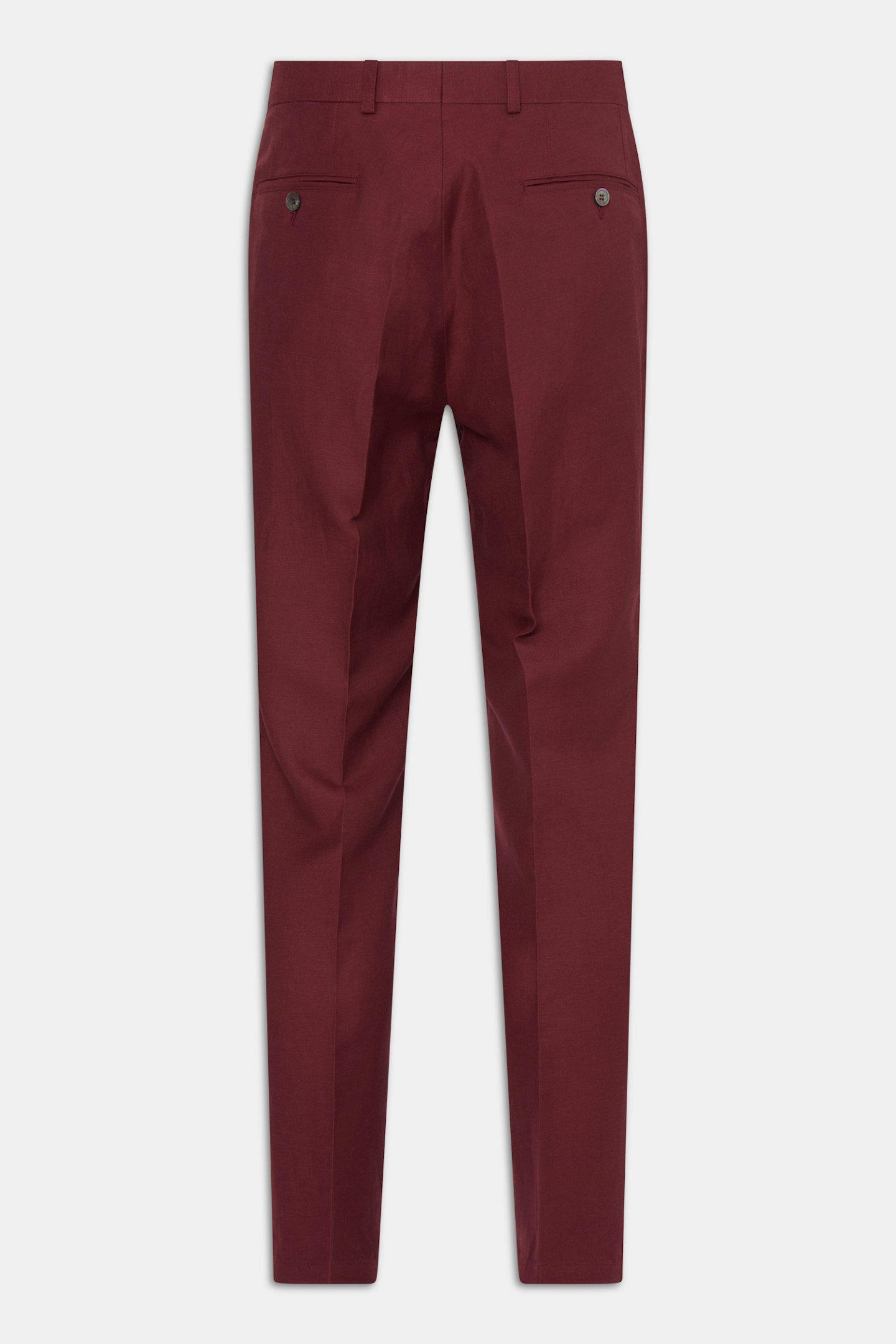 Bukser i en noe rettere passform med en høyere midje. Ekstra romslig ved lår, med avsmalnende ben. Laget av en linblanding.