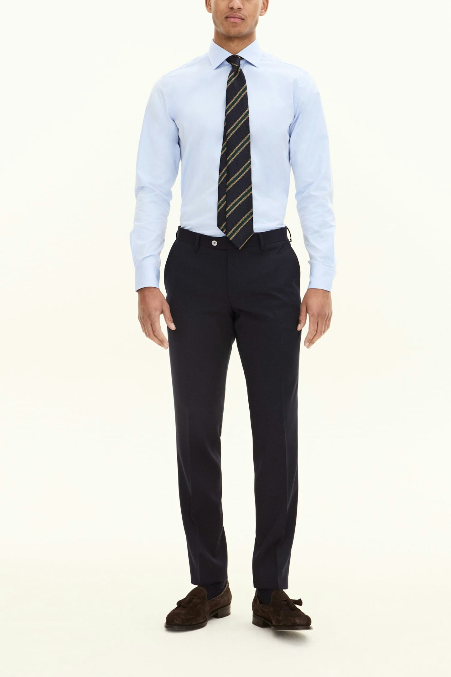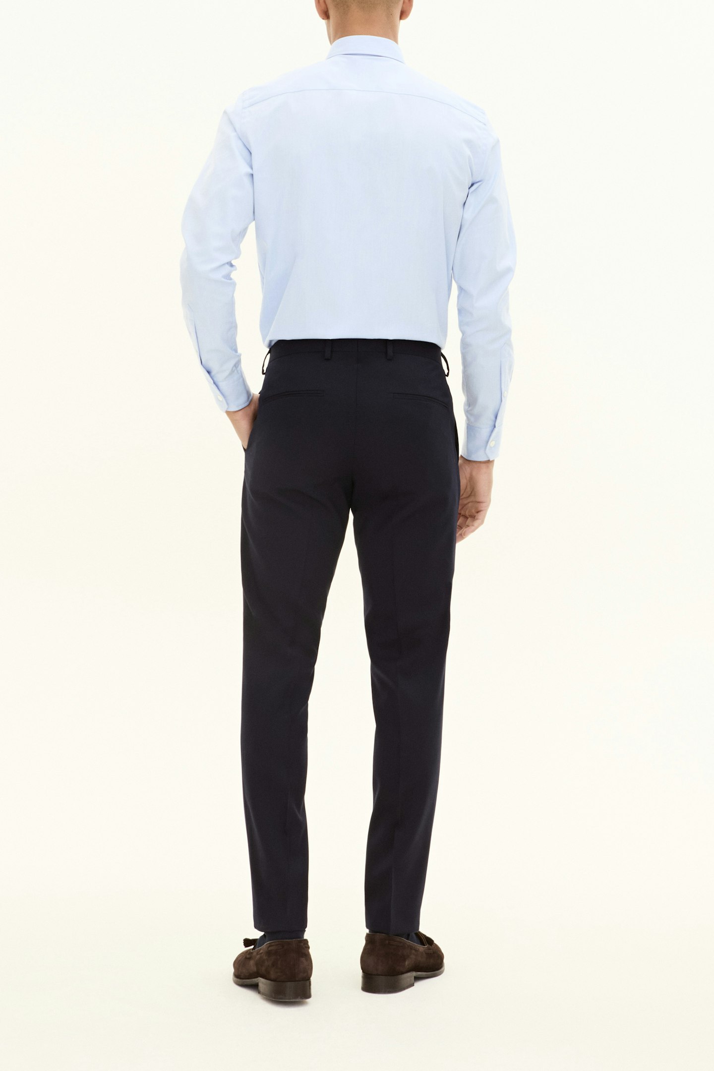 Klassisk dressbukse i super 100’s ull fra det italienske veveriet Marzotto. Modellen har en klassisk, lett smal passform og normalt høyt liv.