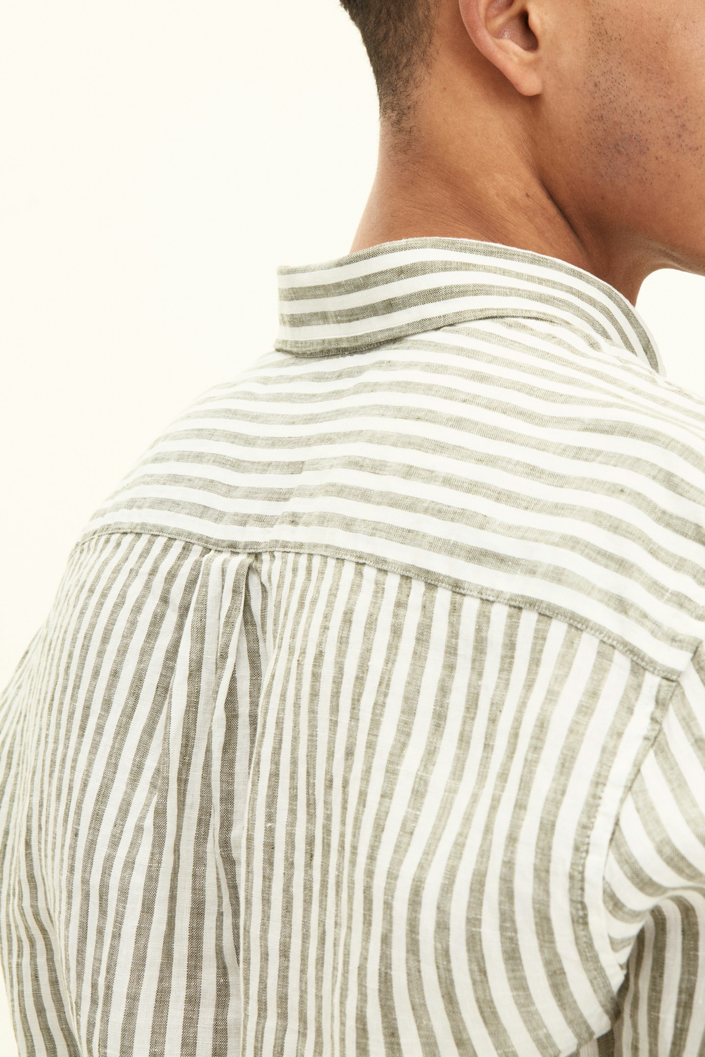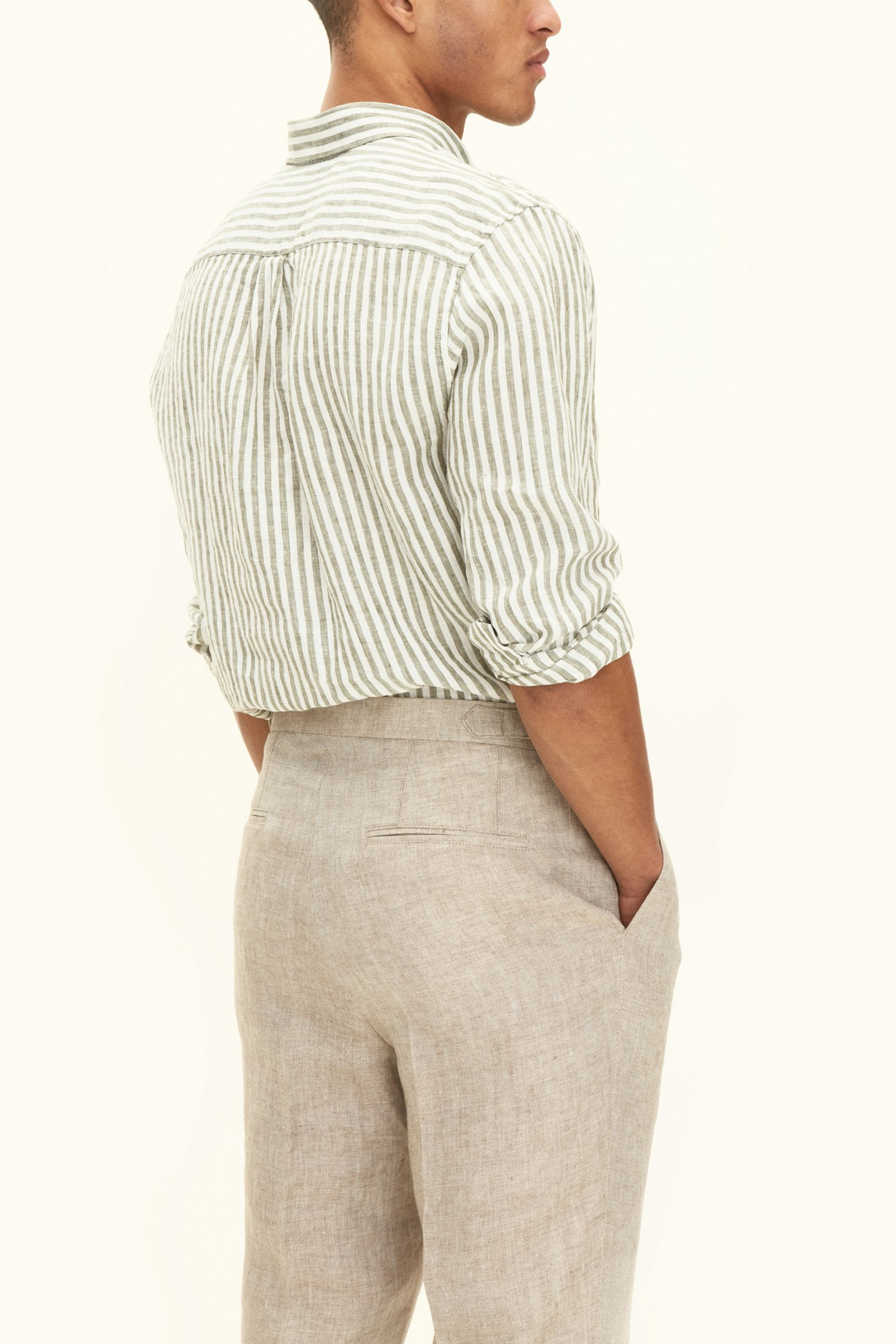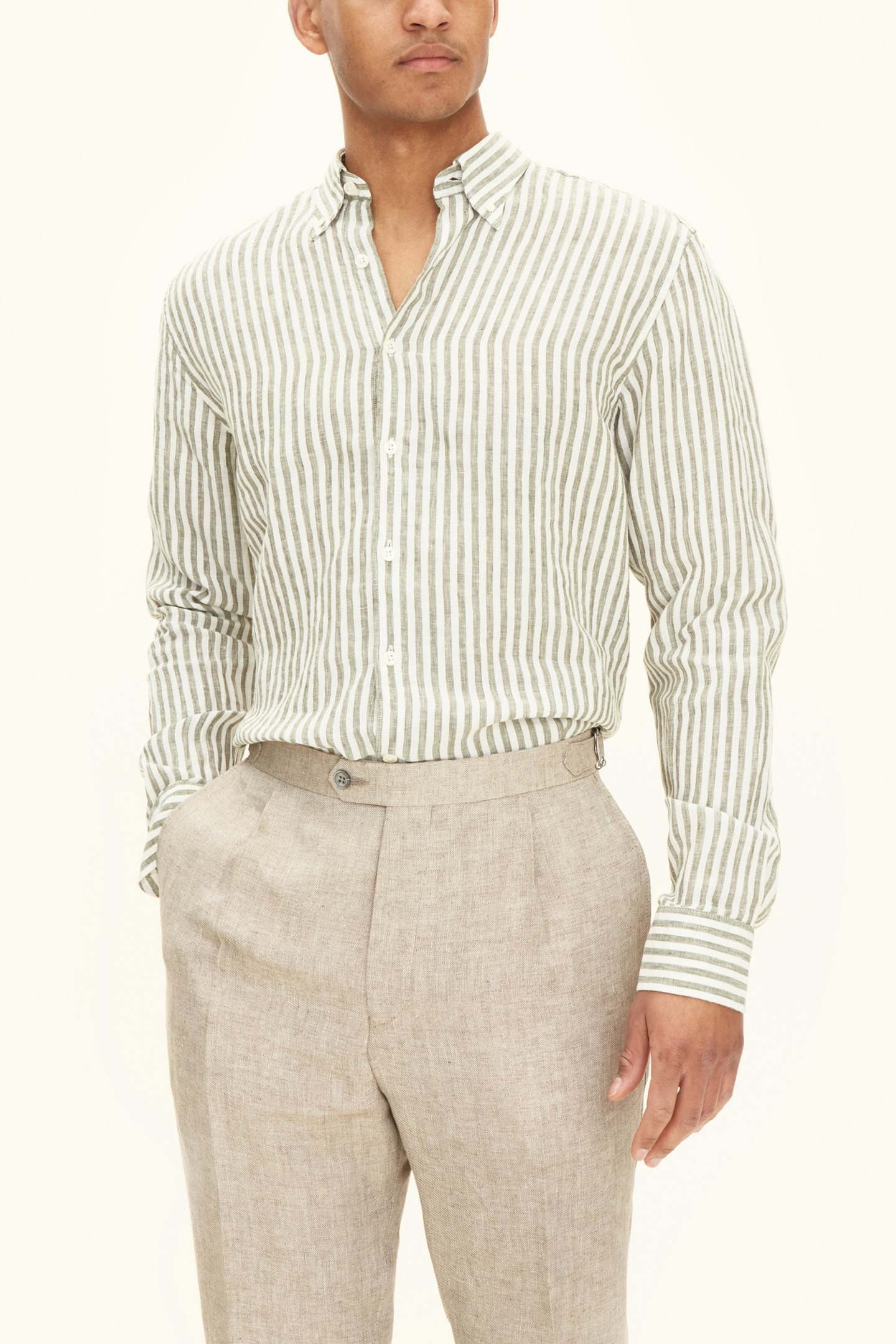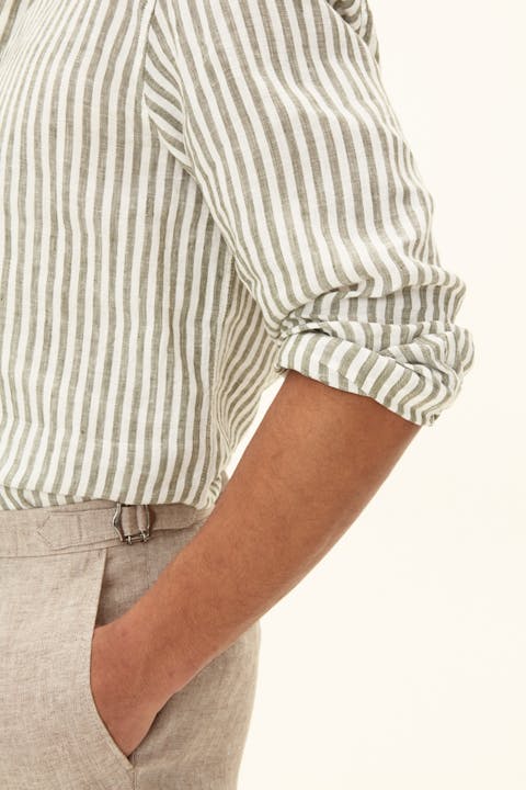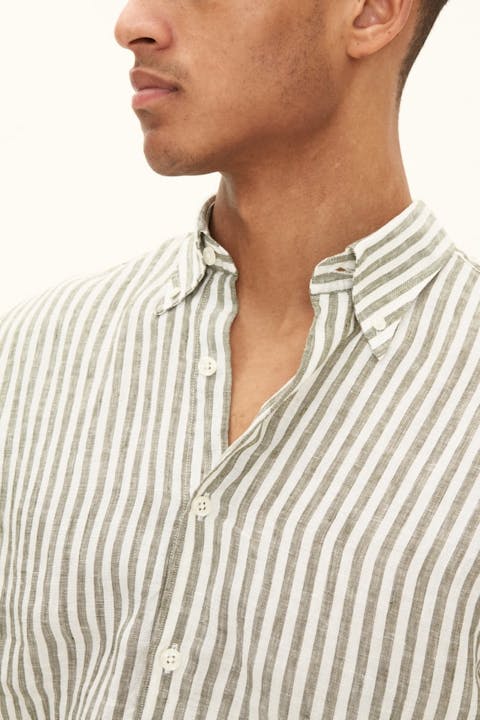 Vår stripete linskjorte i regular fit er et stilig valg for enhver anledning. Den har en button down-krage og en enkelt brystlomme. Skjorten er laget av 100% lin og har et stripemønster. Perfekt for et polert utseende.