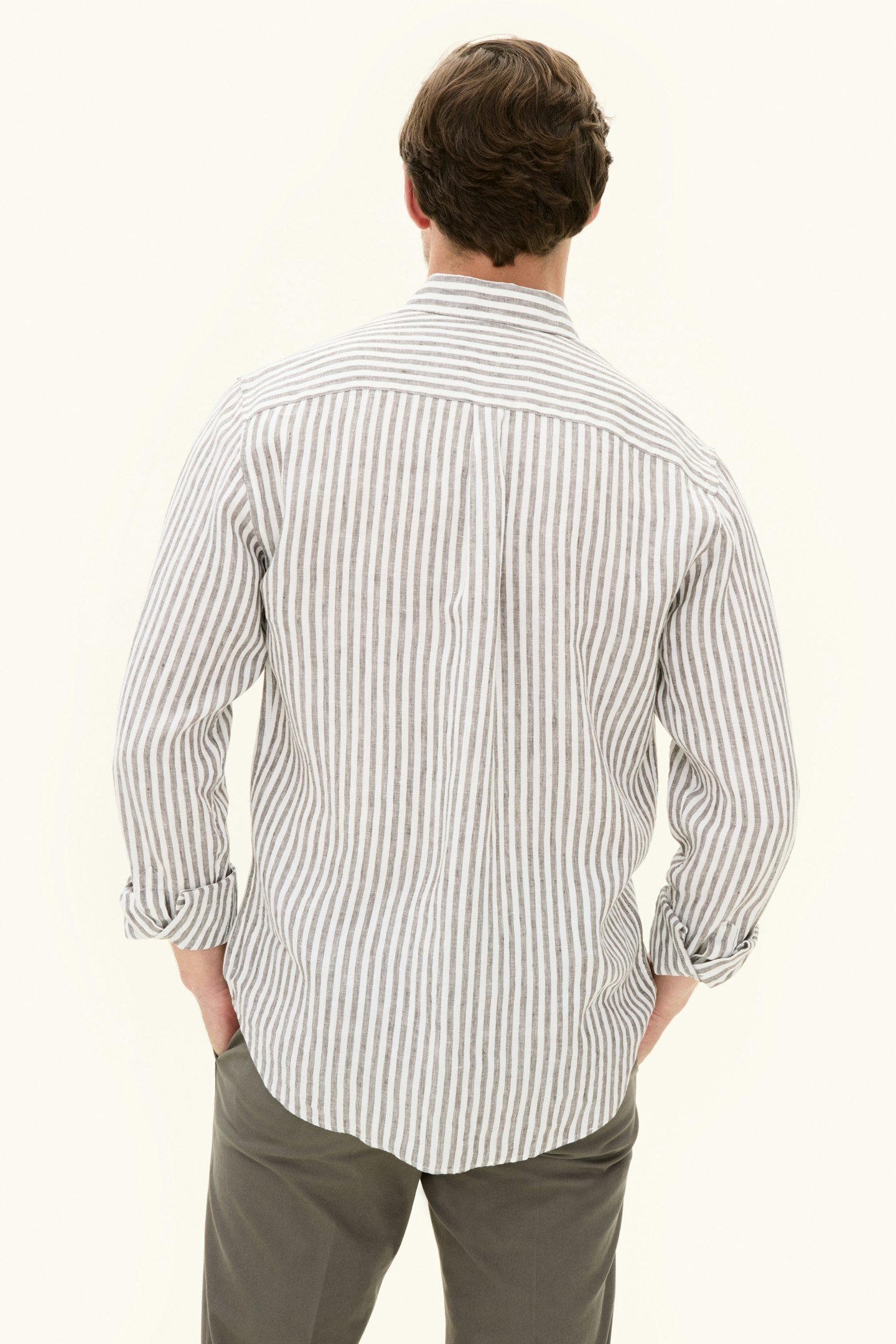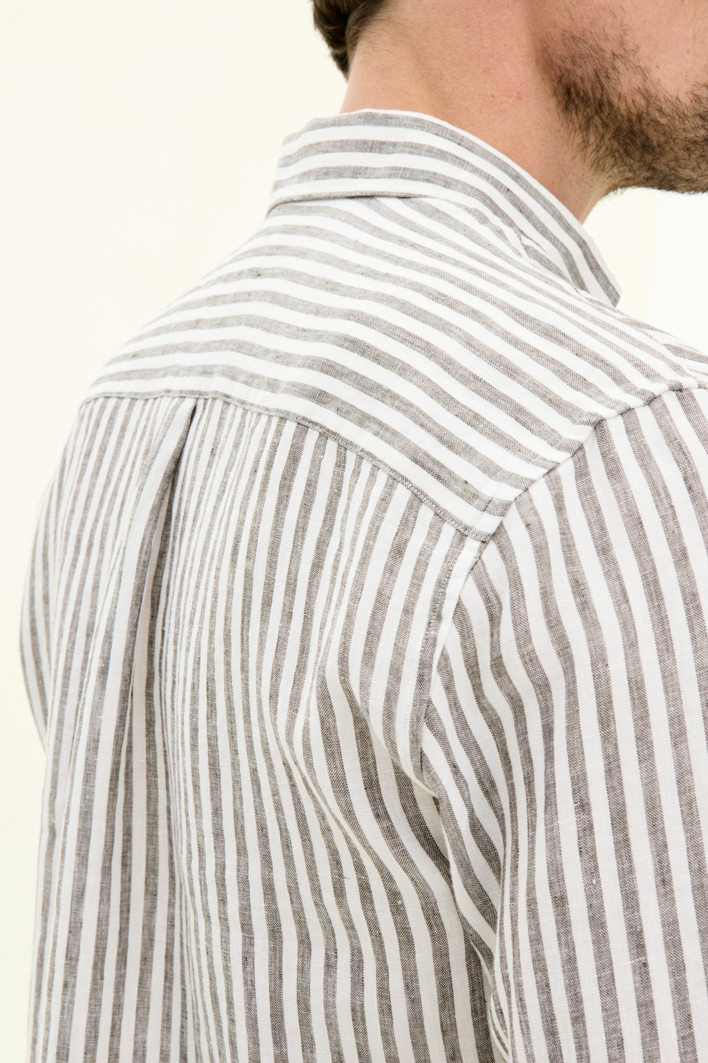Denne skjorten har en regular fit. Den er designet med en sofistikert button down-krage, ferdigstilt med enkle mansjetter og stylet med et tidløst stripemønster. Laget med vevd konstruksjon og en raffinert oxfordtekstur. Den er laget av 100 % lin og er perfekt for en smart-casual stil året rundt.