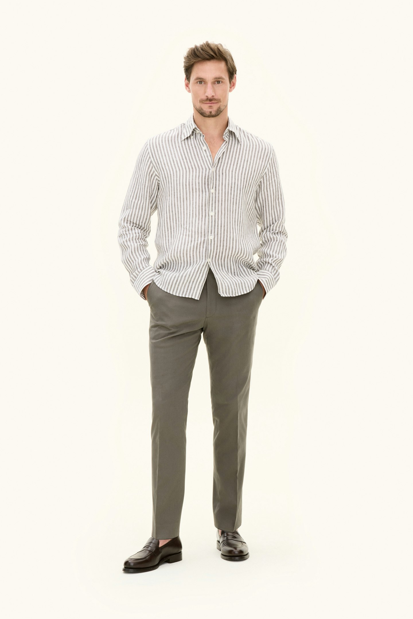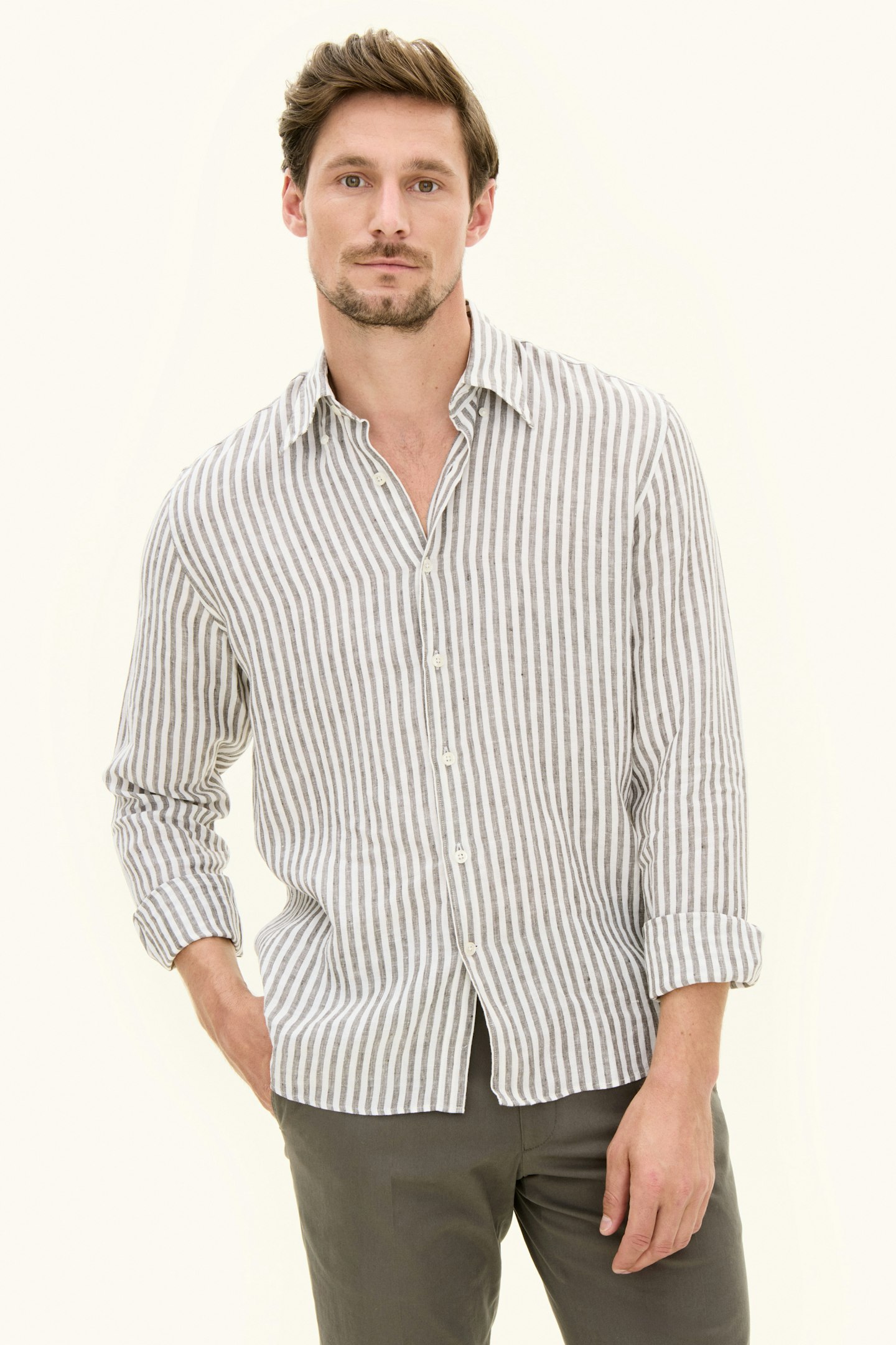 Denne skjorten har en regular fit. Den er designet med en sofistikert button down-krage, ferdigstilt med enkle mansjetter og stylet med et tidløst stripemønster. Laget med vevd konstruksjon og en raffinert oxfordtekstur. Den er laget av 100 % lin og er perfekt for en smart-casual stil året rundt.