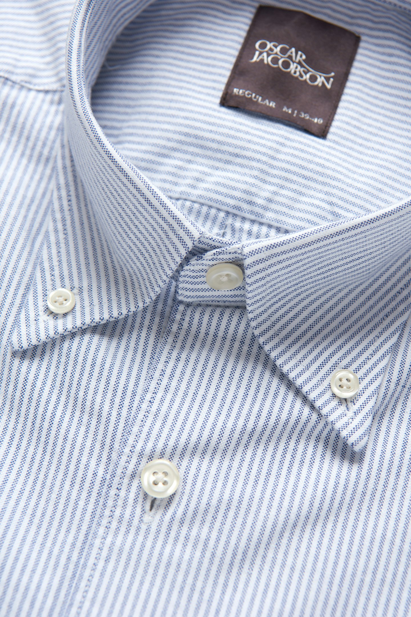 Stripete oxfordskjorte i regular passform. Laget av 100% bomull med elegant struktur, og en button down-krage. Passer perfekt både i formelle og sosiale sammenhenger. En skjorte alle bør ha i sin basisgarderobe, og som fungerer like bra innenfor buksen som hengende løst.