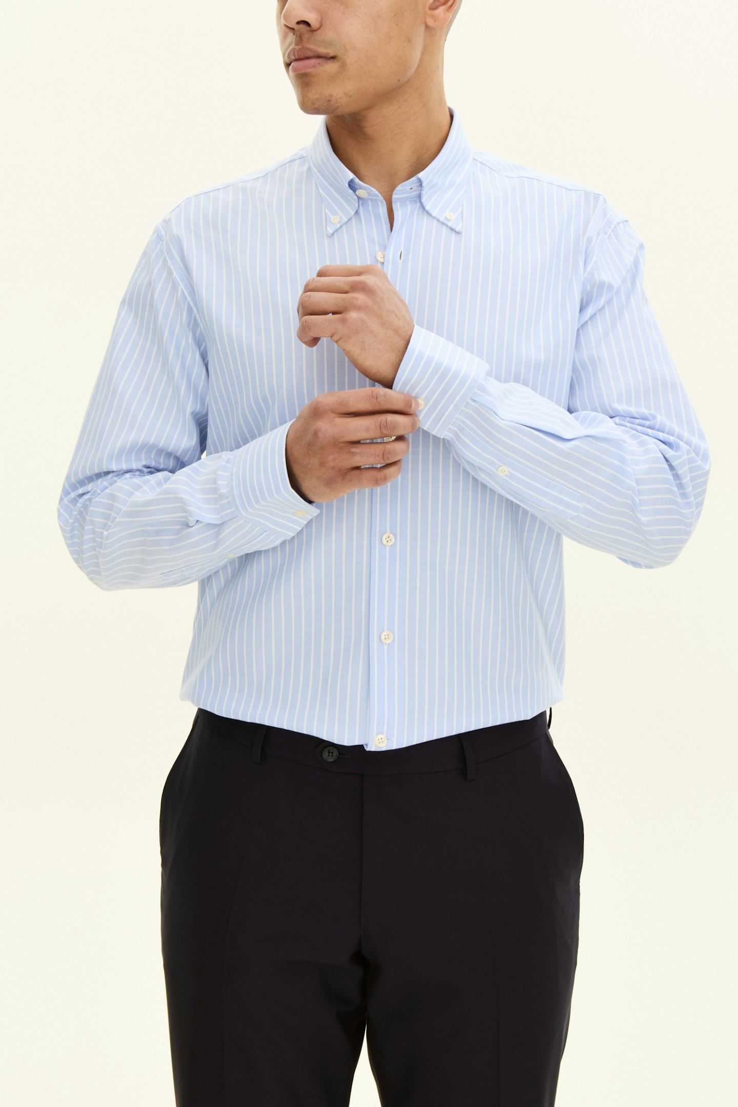 Stripete oxfordskjorte i regular passform. Laget av 100% bomull med elegant struktur, og en button down-krage. Passer perfekt både i formelle og sosiale sammenhenger. En skjorte alle bør ha i sin basisgarderobe, og som fungerer like bra innenfor buksen som hengende løst.