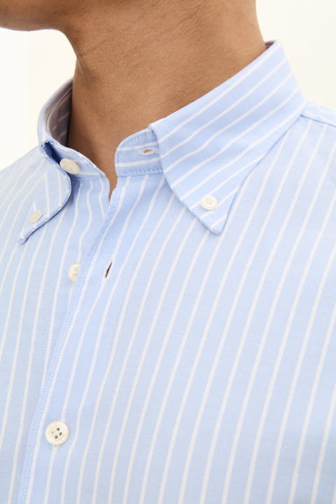 Stripete oxfordskjorte i regular passform. Laget av 100% bomull med elegant struktur, og en button down-krage. Passer perfekt både i formelle og sosiale sammenhenger. En skjorte alle bør ha i sin basisgarderobe, og som fungerer like bra innenfor buksen som hengende løst.