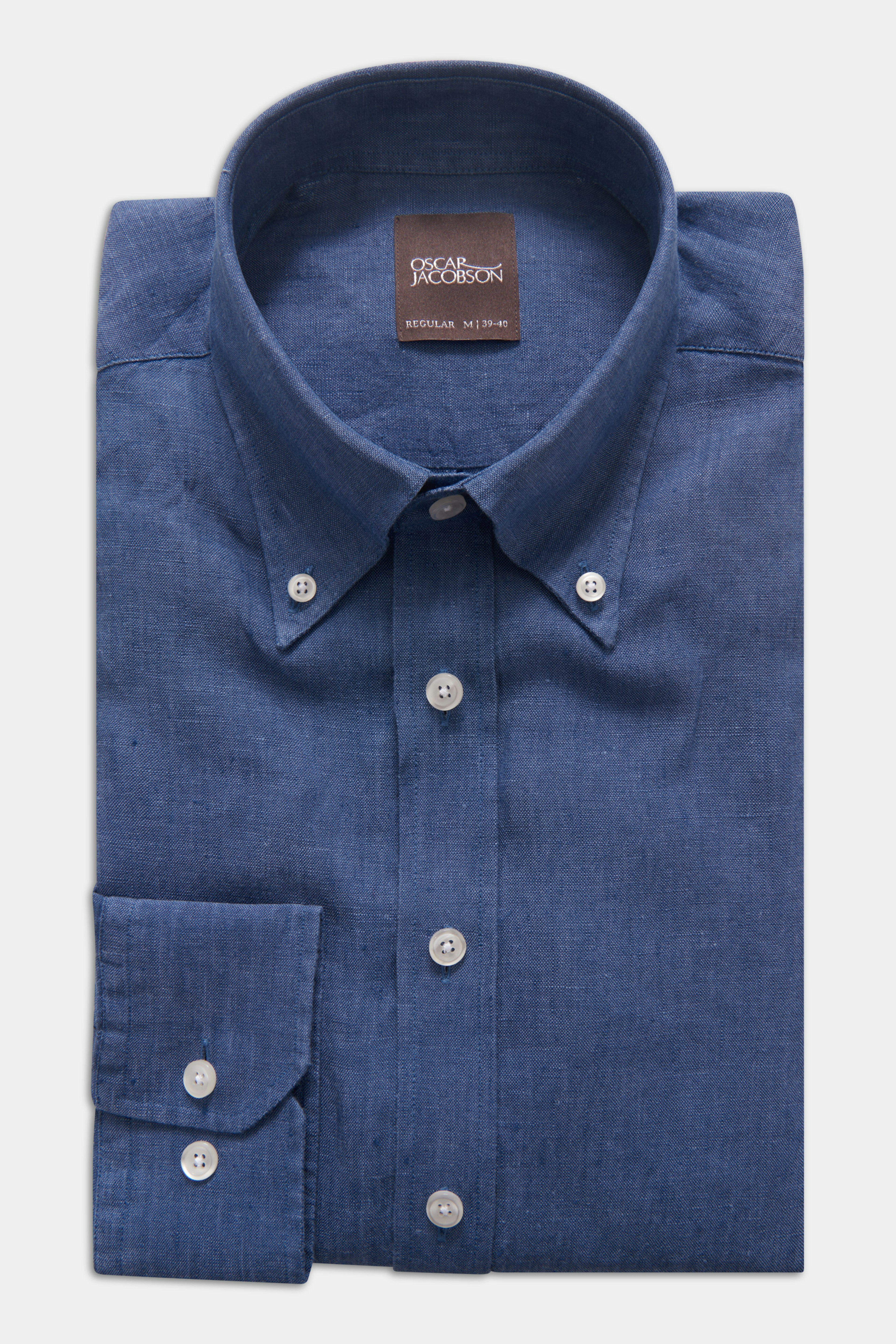 Skjorte i regular fit med en avslappet button down krage og enkel mansjett. Laget av et tynt og svalt linstoff.