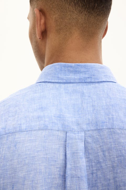 Linskjorte i regular fit med en avslappet button down krage og enkel mansjett.