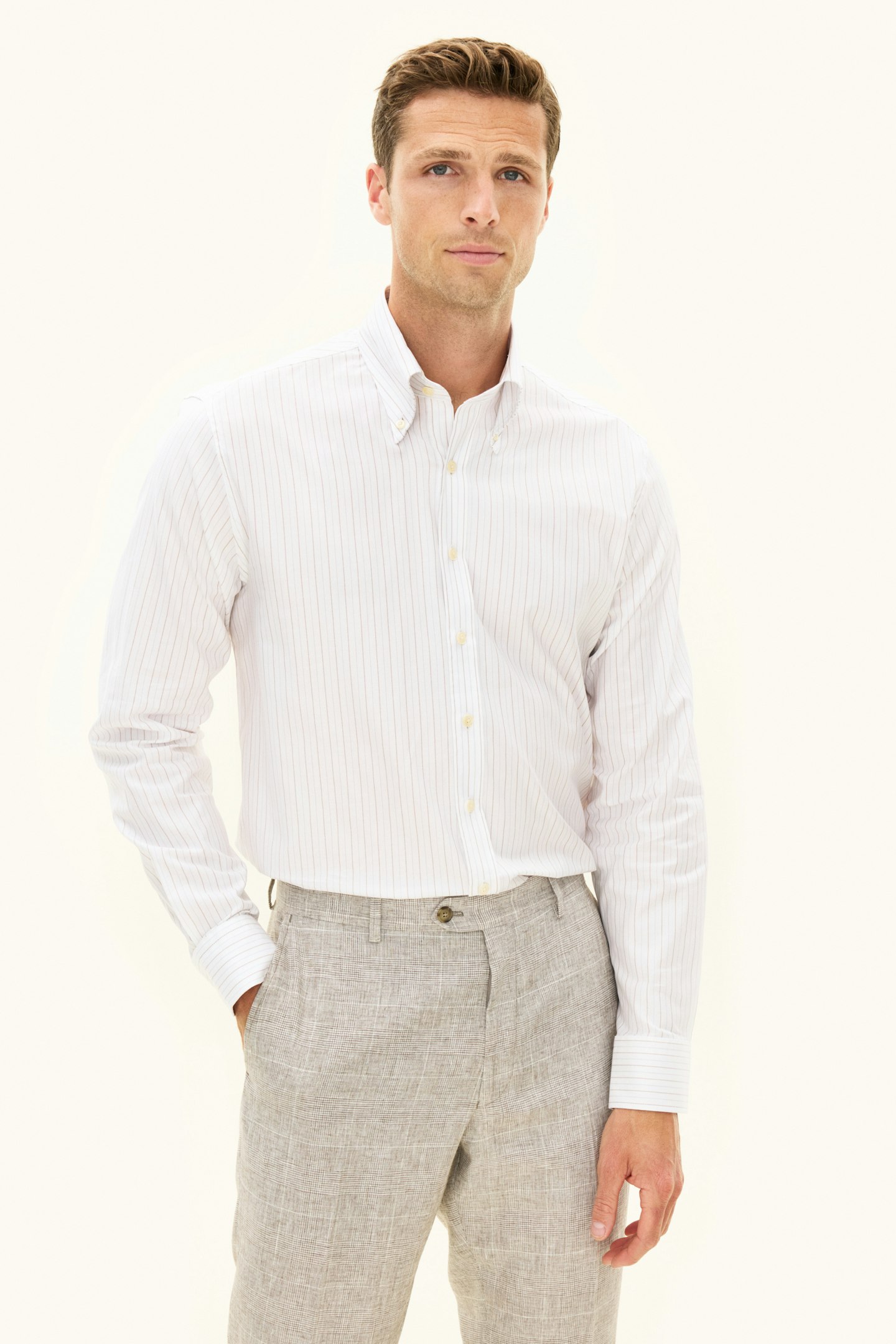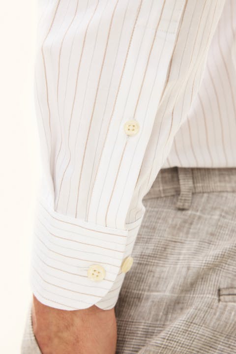Slim fit skjorte med klassisk button-downkrage, laget av en stiv bomullsblanding. Det stilige mønsteret gir et moderne uttrykk til en tidløs silhuett – bruk den under en jakke eller alene med oppbrettede ermer.