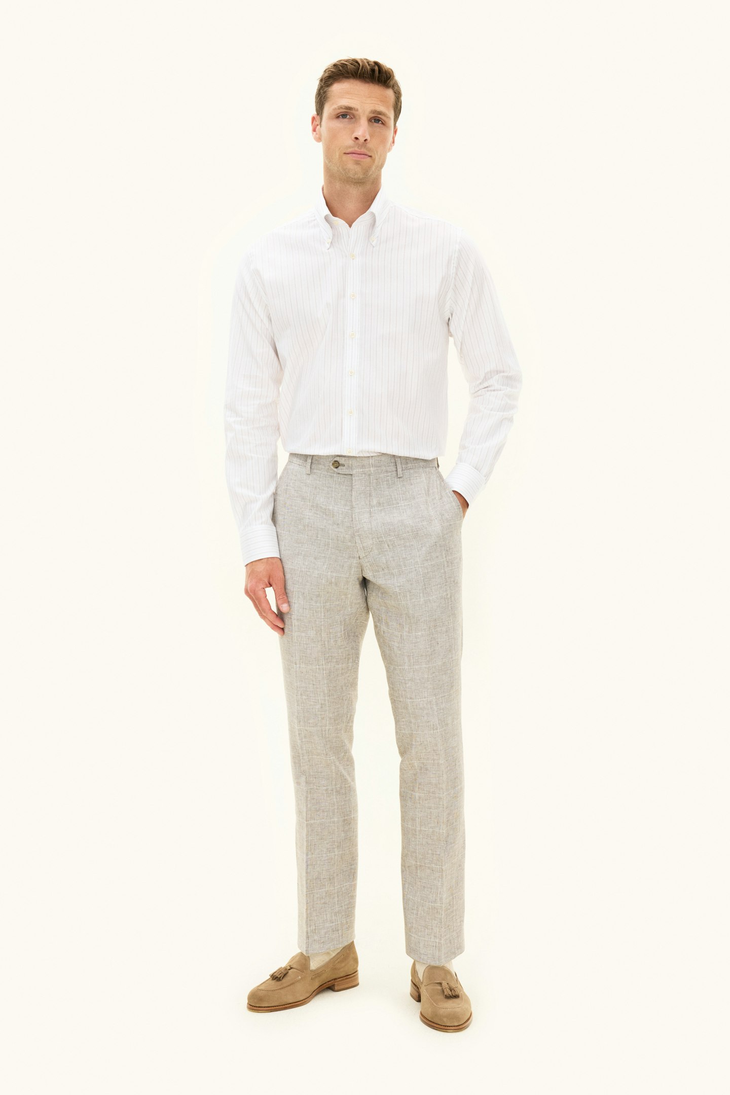Slim fit skjorte med klassisk button-downkrage, laget av en stiv bomullsblanding. Det stilige mønsteret gir et moderne uttrykk til en tidløs silhuett – bruk den under en jakke eller alene med oppbrettede ermer.