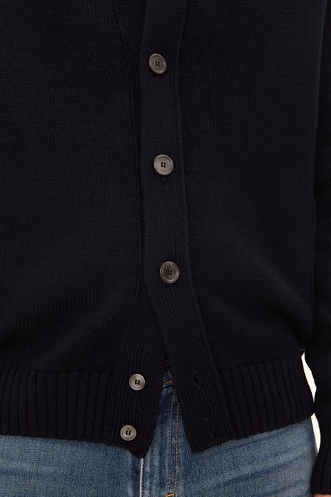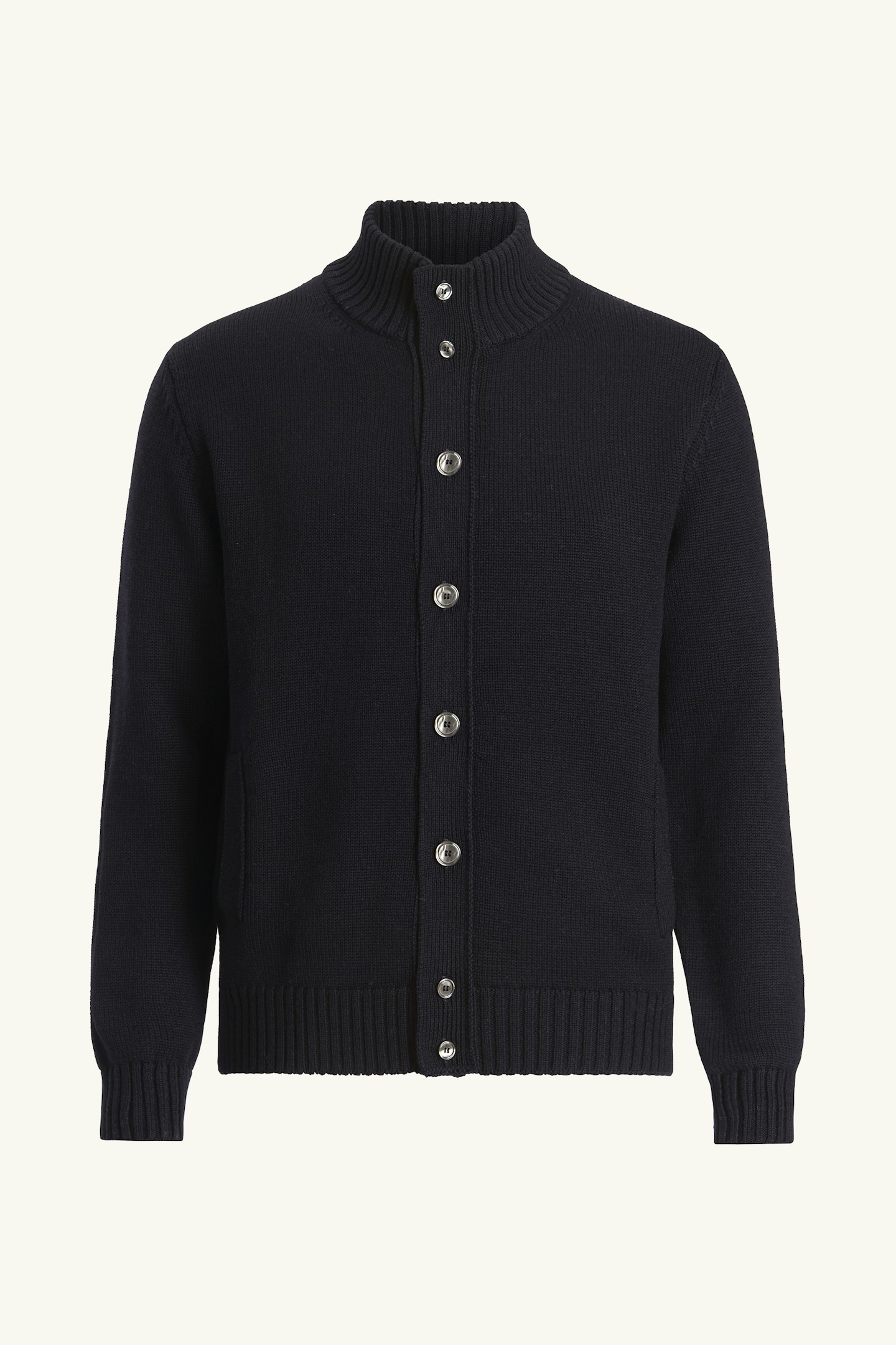 Rustikk cardigan i ekstra fin merinoull fra Lanerossi, Italia. Grovstrikket i 5gg med knapper foran og praktiske lommer. Perfekt for både innendørs og utendørs bruk tidlig på høsten eller våren.