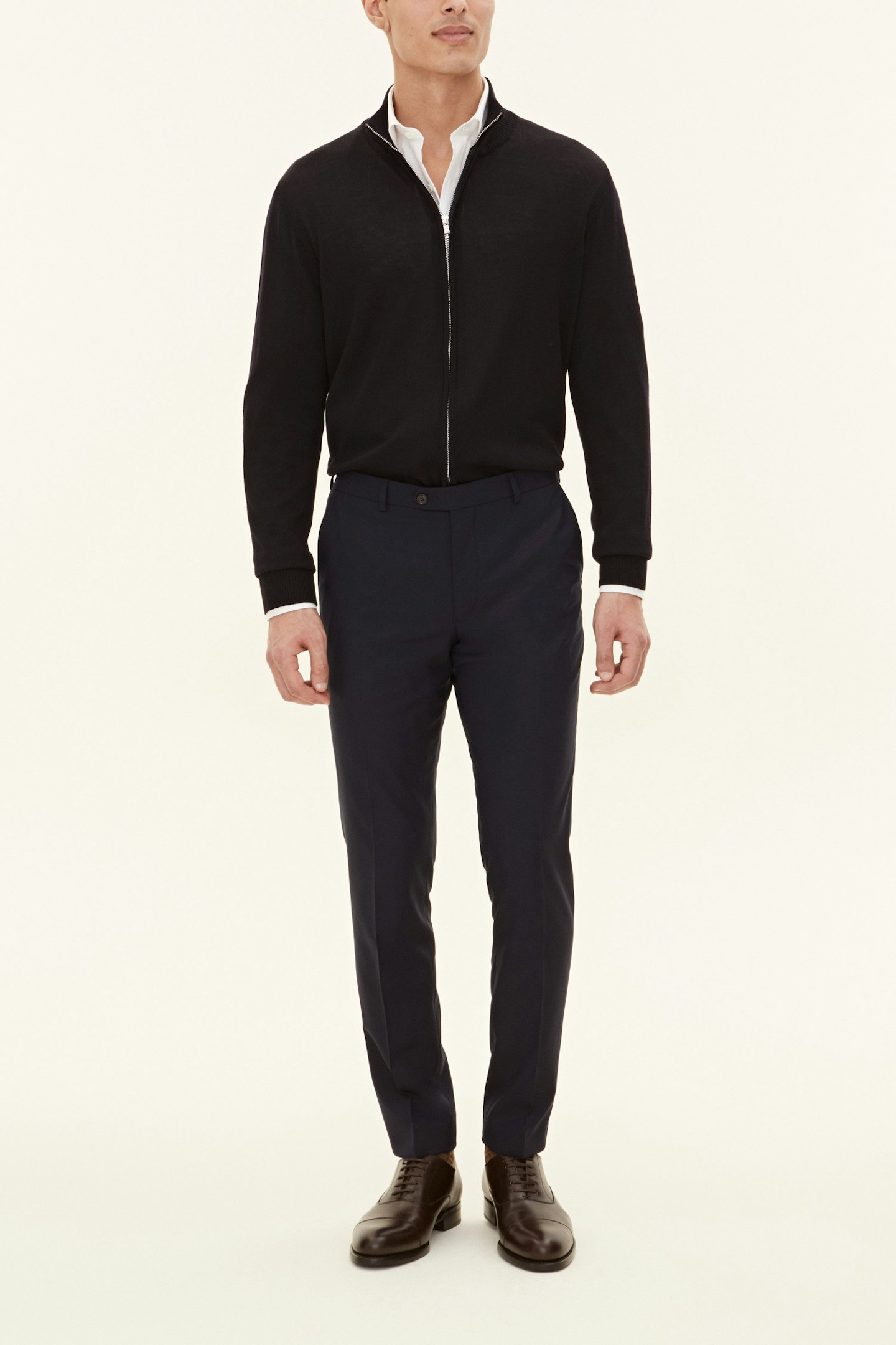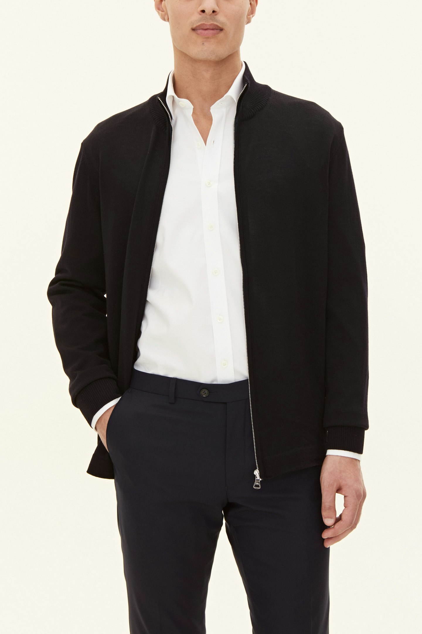 Klassisk cardigan i ekstra fin merinoull fra Tollegno, Italia. De lange ullfibrene gir plagget en luksuriøs og lett blank overflate. Strikket i 12gg, gjør den perfekt til å ha over en t-skjorte eller skjorte, eller under en jakke.