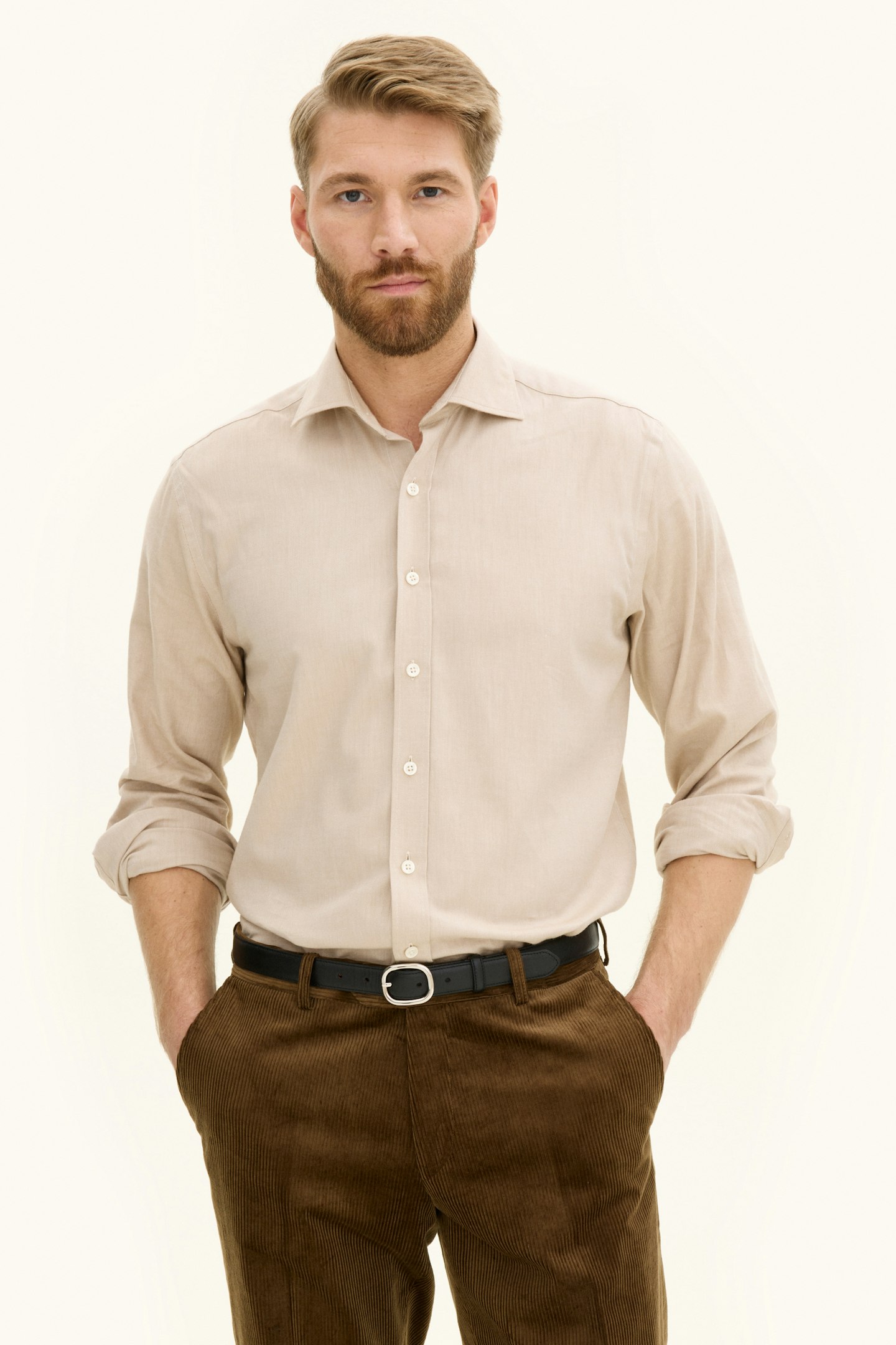 Skjorte i myk bomullsflanell med en elegant regular fit, cut away-krage og enkle mansjetter. Et must-have for en sofistikert hverdagsstil.