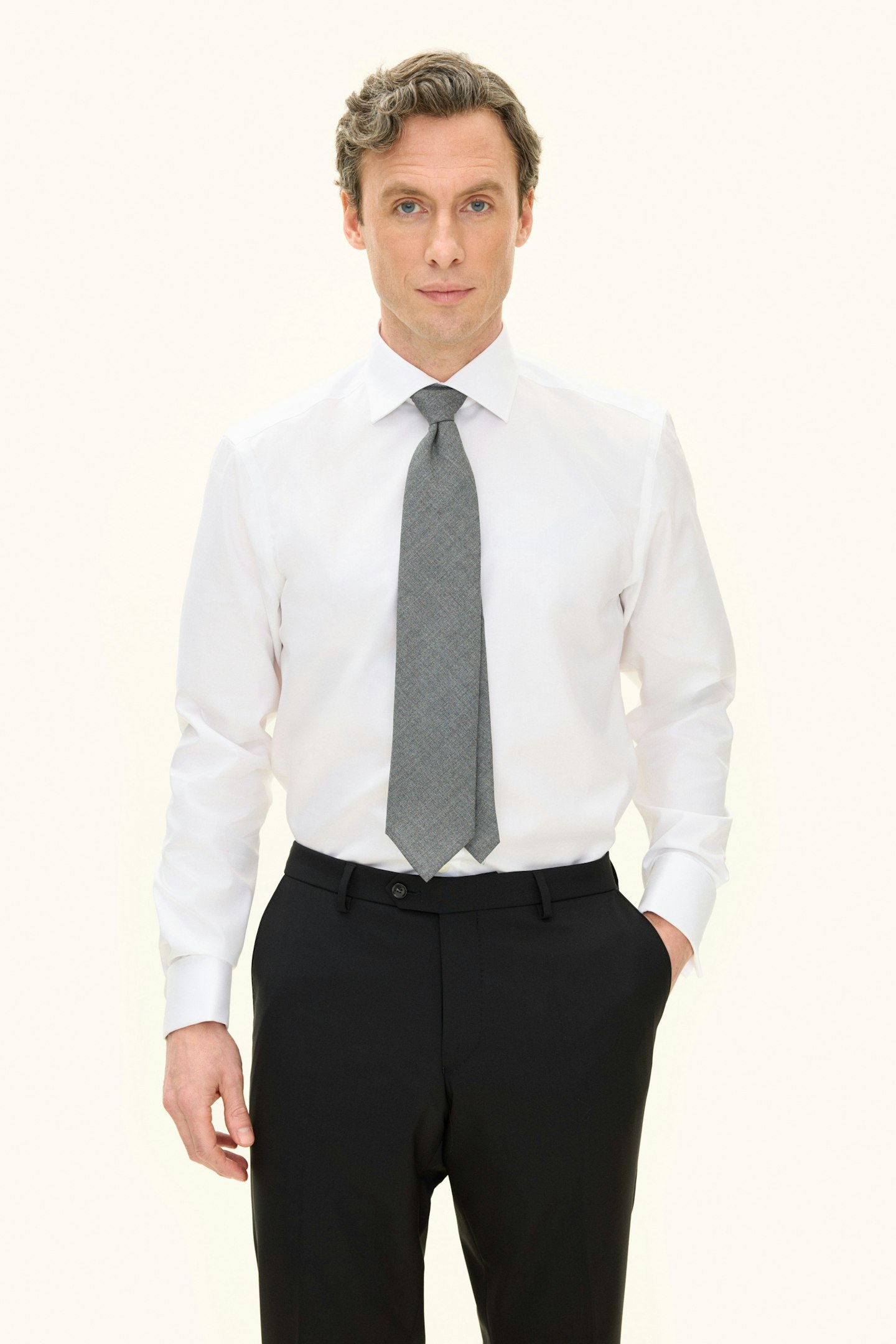 Strykefri skjorte i 100 % bomull med cutaway-krage og doble mansjetter. Regular fit modellen gir en klassisk og behagelig silhuett, mens twill-vevingen gir en sofistikert dybde. Et pålitelig valg for mer formelle anledninger.