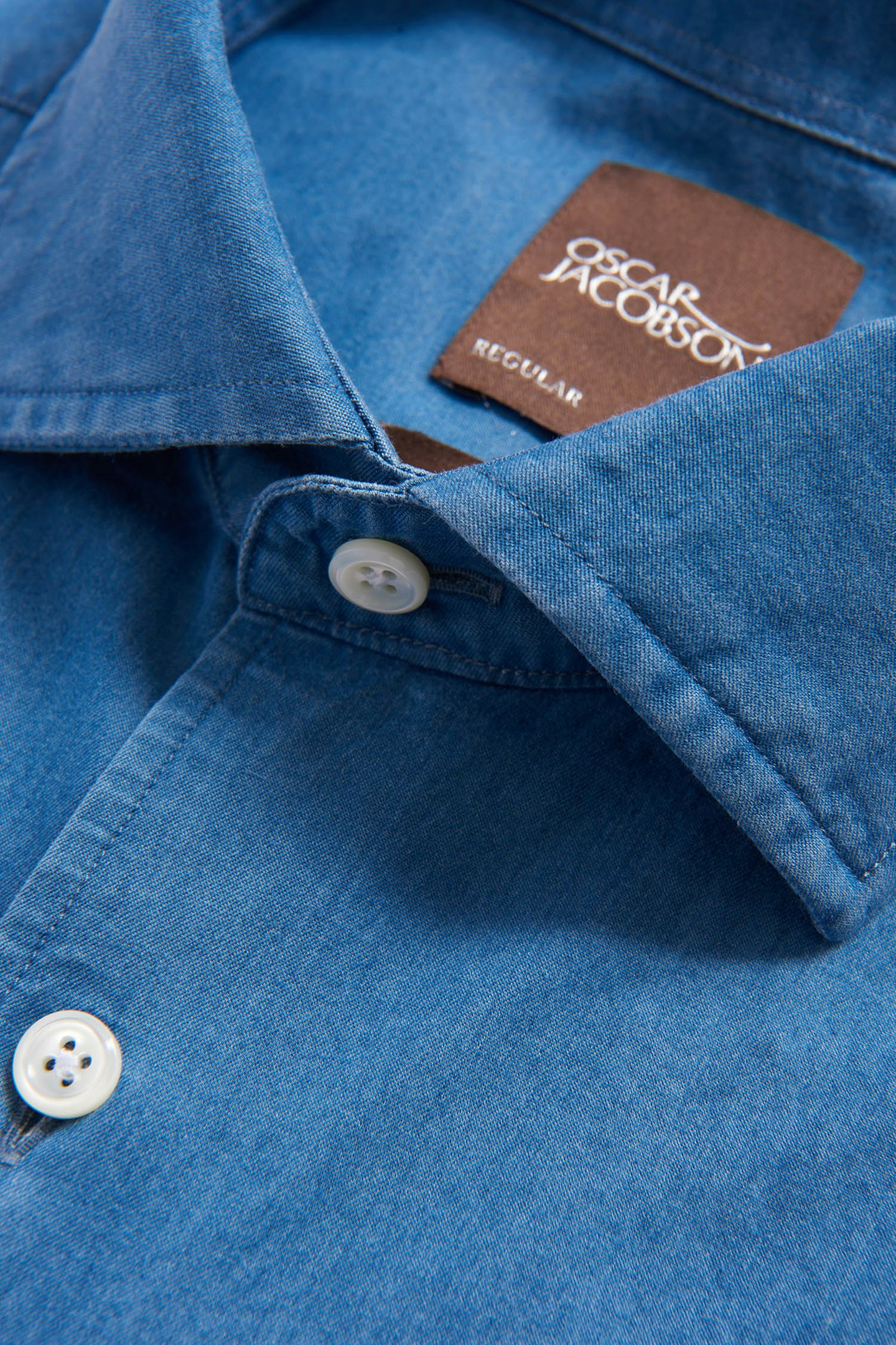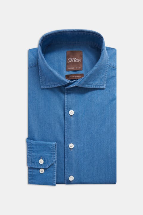 Jeansskjorte i regular fit med enkel mansjett, laget av et luksuriøs bomullsmateriale fra italienske Albiate 1830. Den elegante semi cut away-kragen gjør seg utmerket både under en blazer eller med oppbrettede ermer.