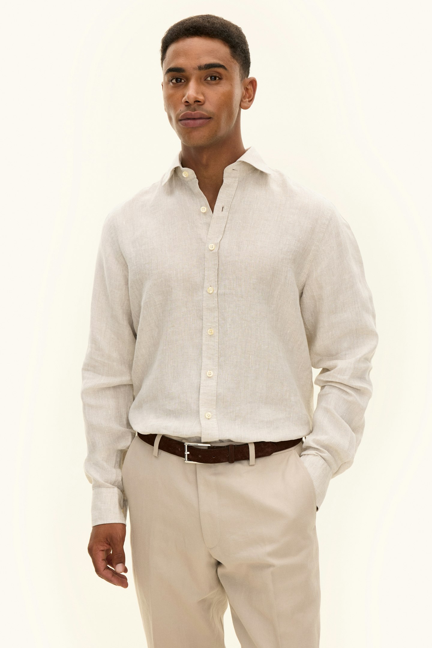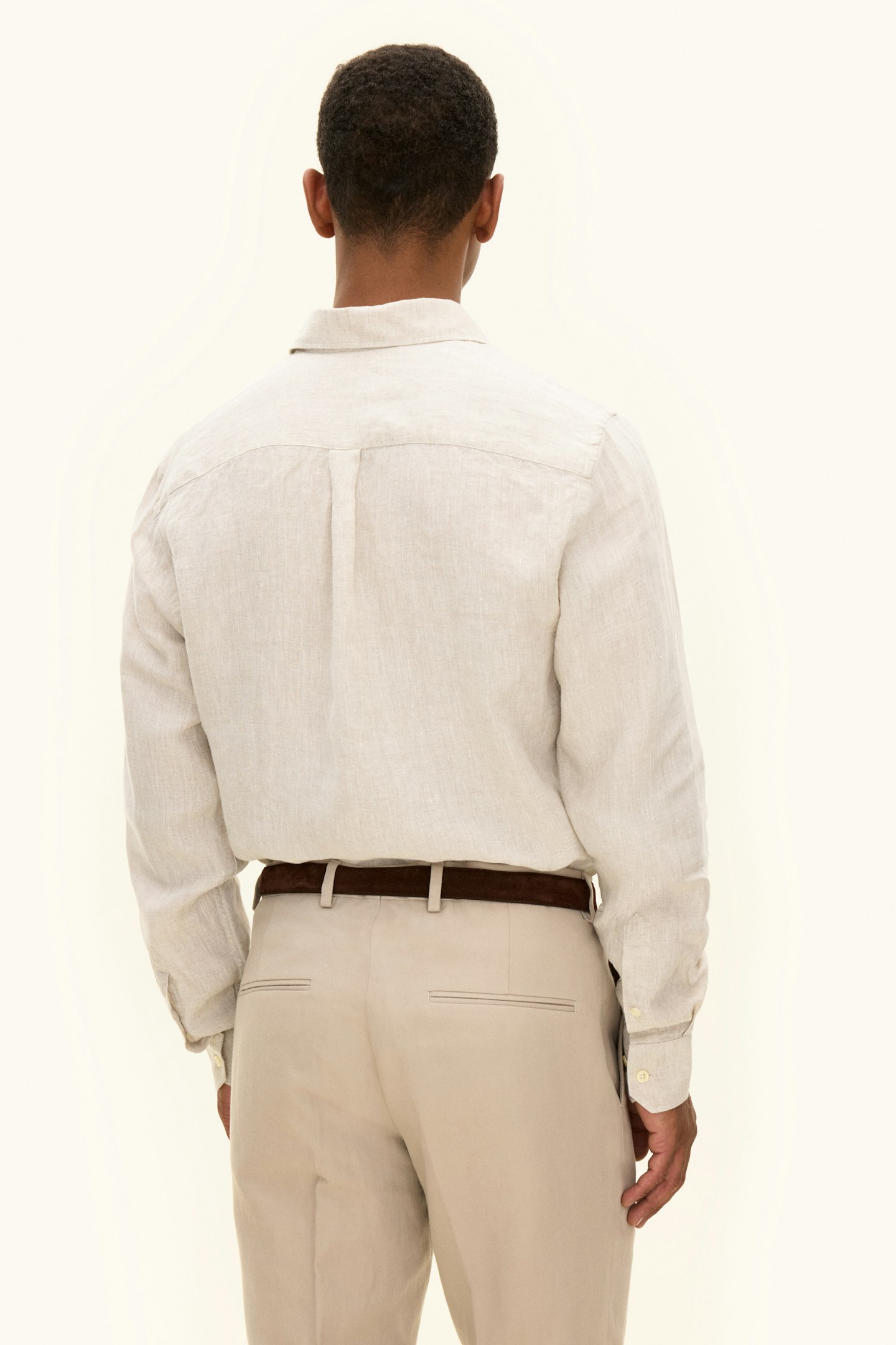 Skjorte i 100 % lin, forvasket for å gi en mykere følelse fra første bruk. Passformen er regular og tilpasset et avslappet uttrykk, med en mer avslappet cut away-krage og enkel mansjett. Modellen er 2 cm kortere enn våre klassiske businessskjorter, noe som gjør at den kan bæres både tucked in og untucked. Vaskebehandlingen gjør linet mer føyelig samtidig som strukturen beholdes. En klassisk skjortetype med en avslappet balanse mellom form og komfort.