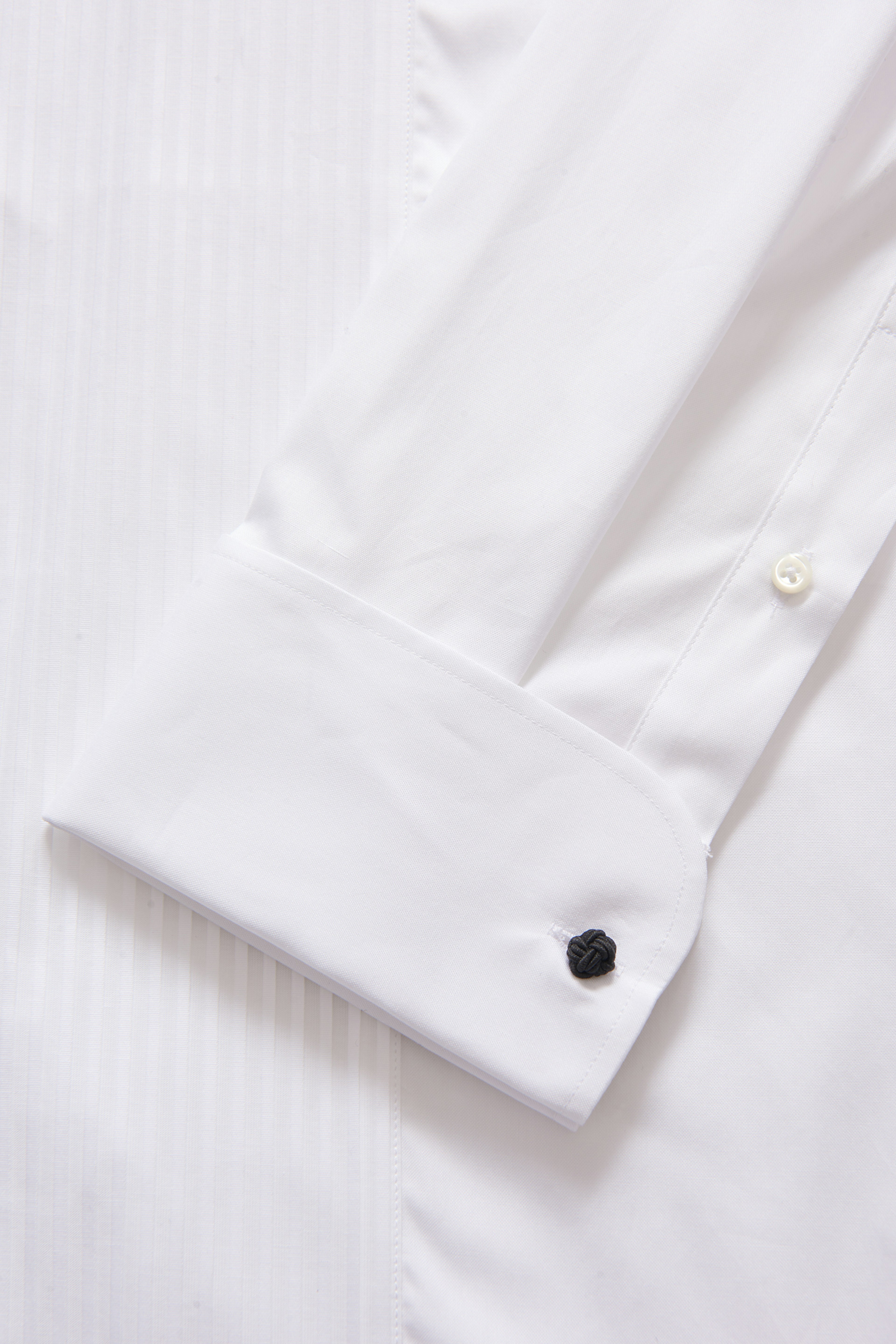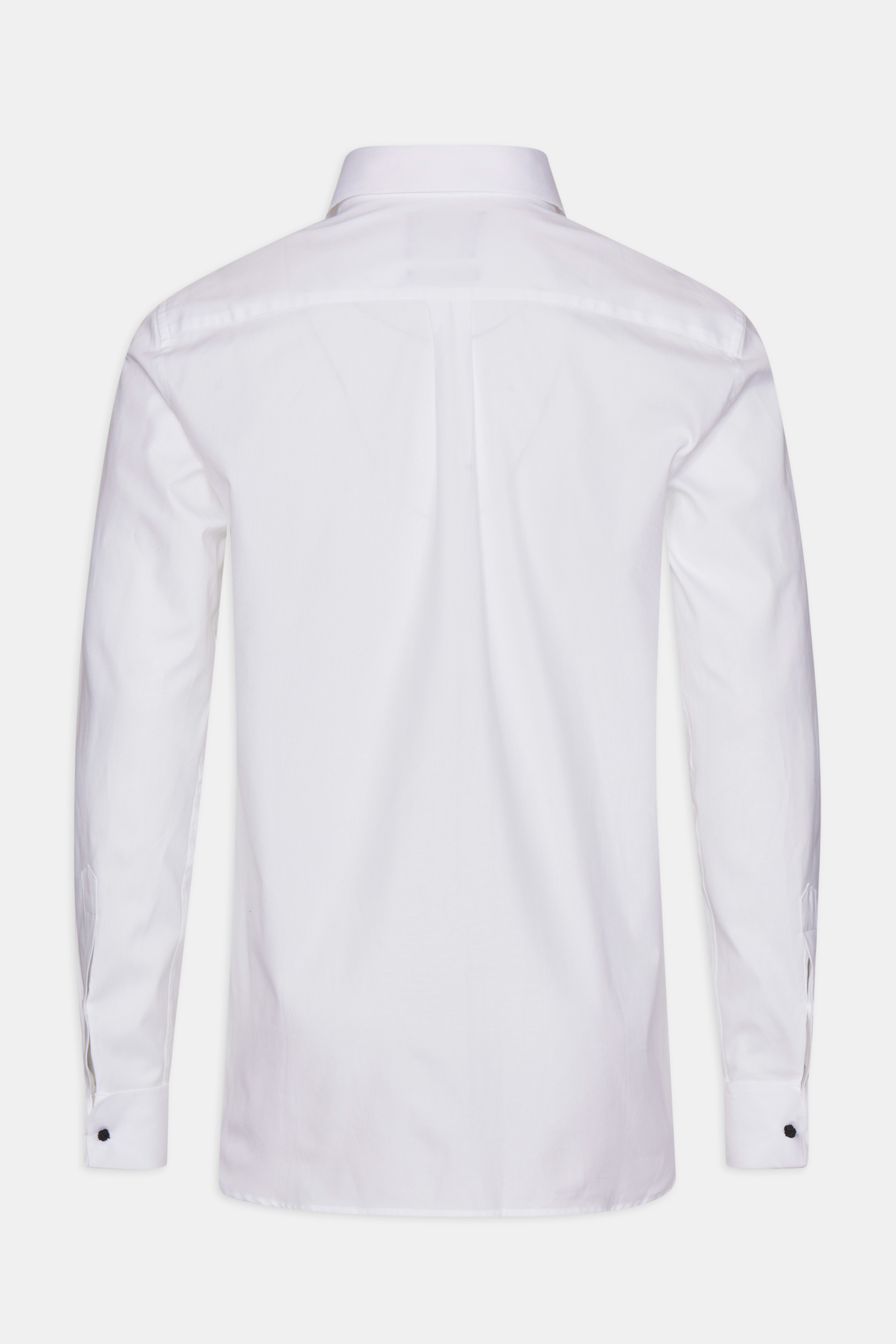 Smokingskjorte i regular fit laget av 100% bomull. Plissert bryst, dobbel mansjett og klassisk cut away-krage.