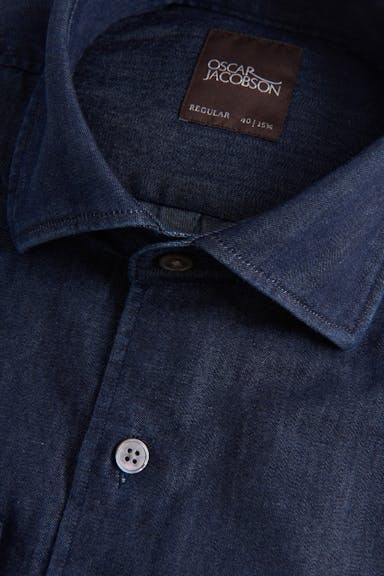 Skjorte i regular fit med cut away-krage. Laget av vasket denimstoff. 100% bomull.
