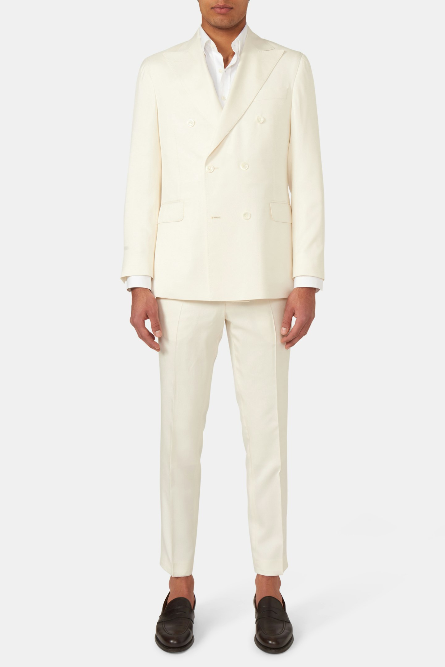 Dobbeltspent dress med blazer i regular fit med mykt konstruert skulder og helfôret innside. Klassiske dressbukser med en avsmalnende passform, normalhøy midje og klassisk bukselengde. Laget av 100 % silke.