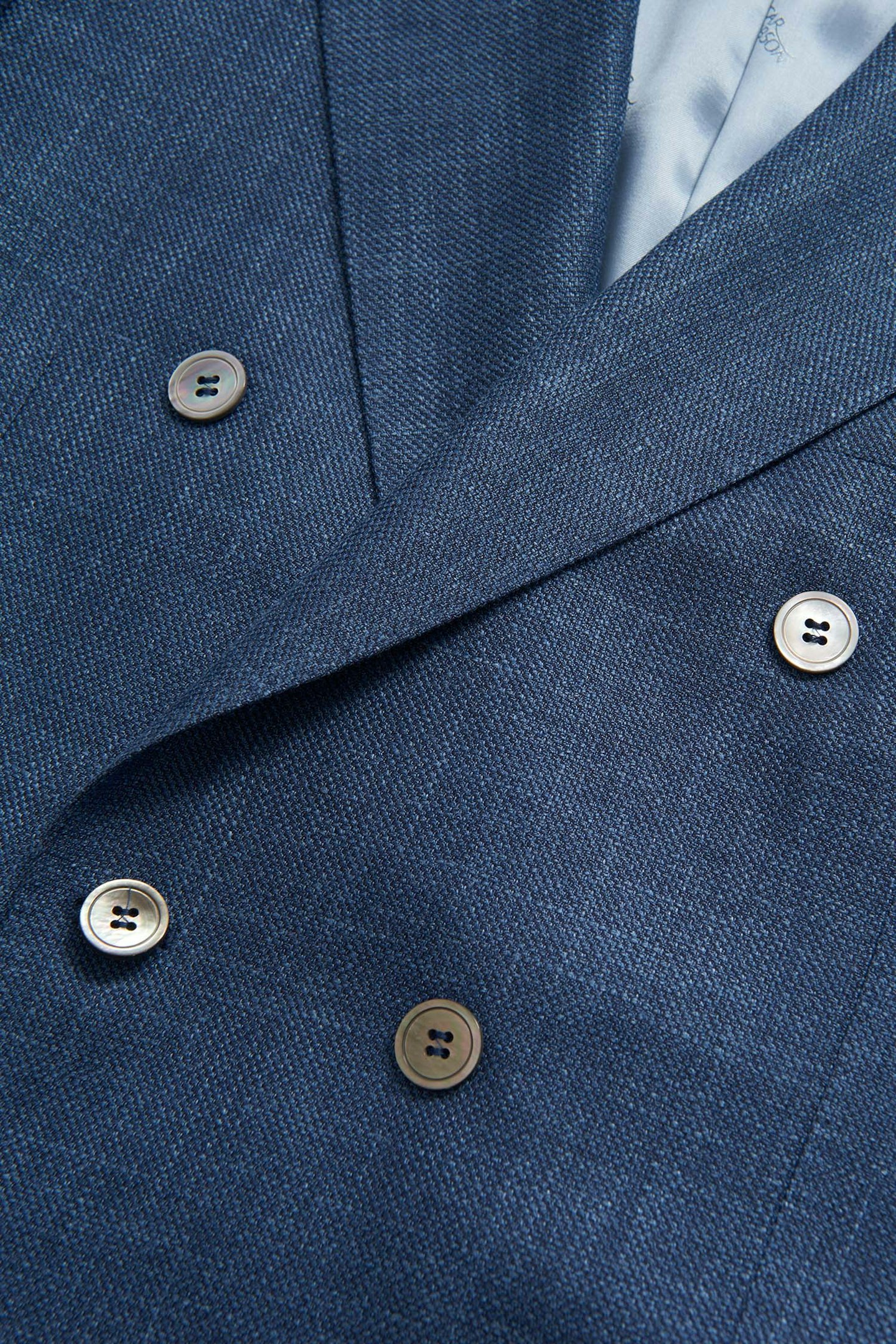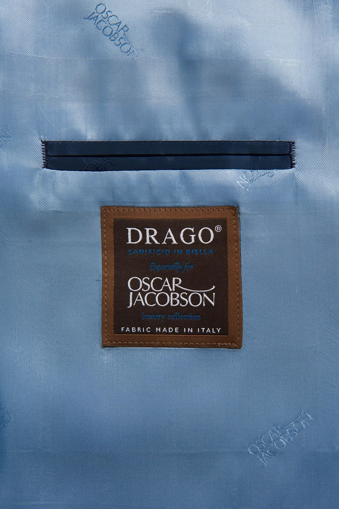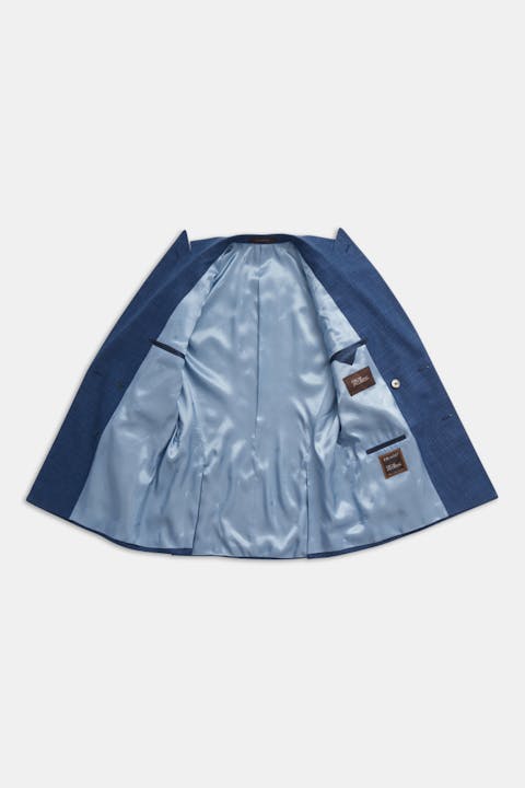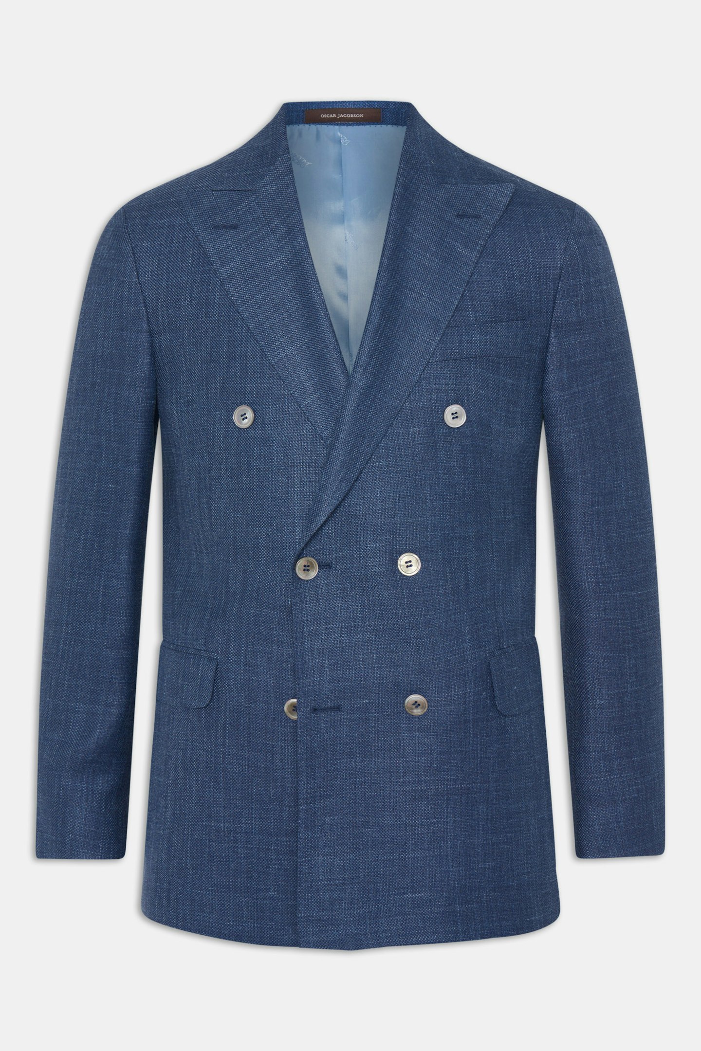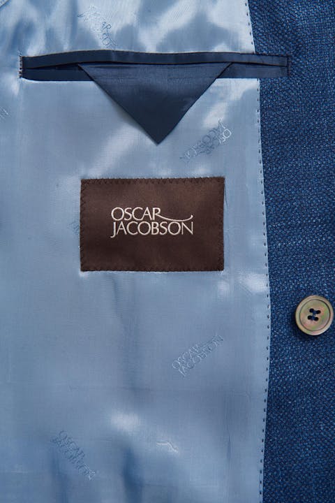 Dobbeltspent blazer i regular passform med spisse slag, ekstra mykt konstruert skulder, helfôret innside og klassiske lommer med lommeklaff. Laget av et eksklusivt stoff fra italienske veveriet Drago av ull, silke og lin.