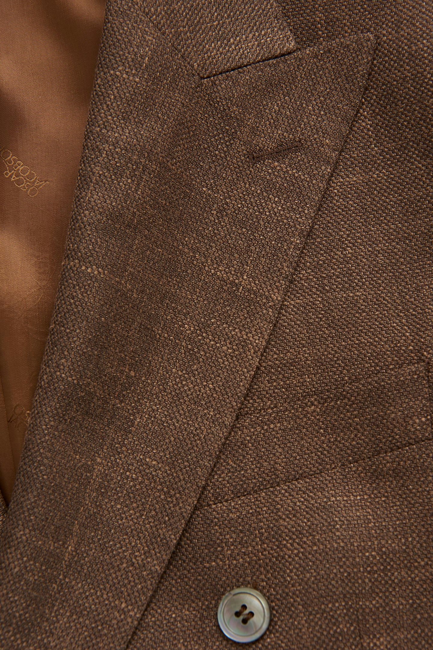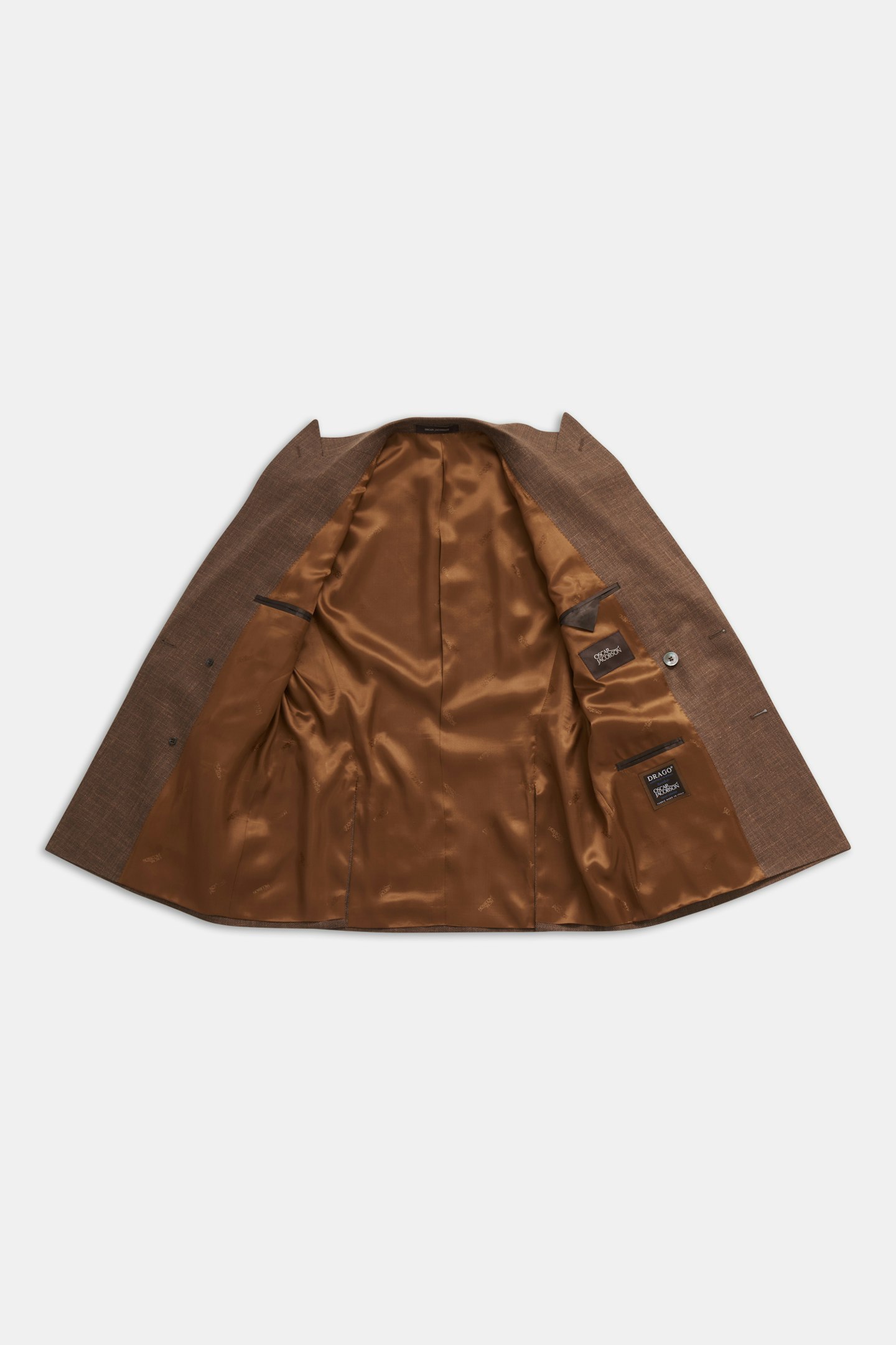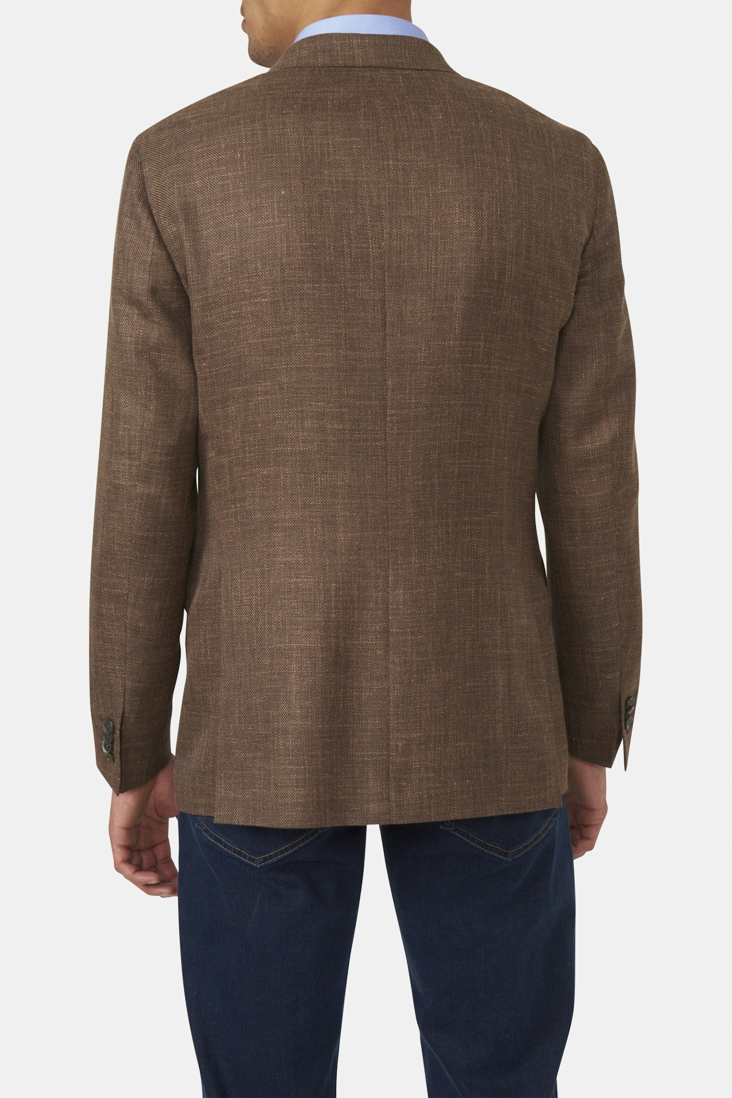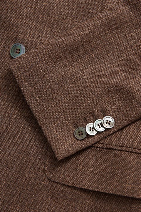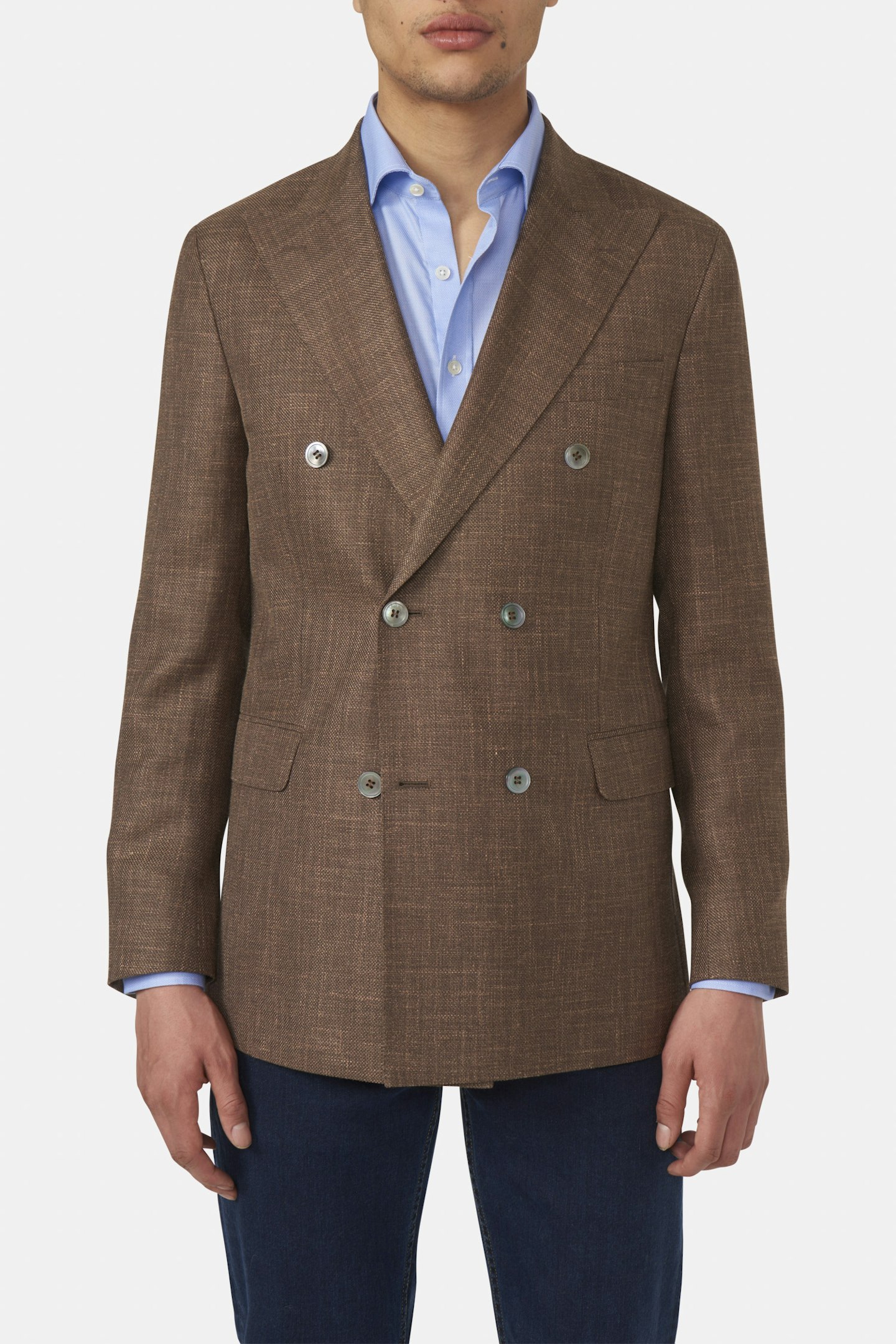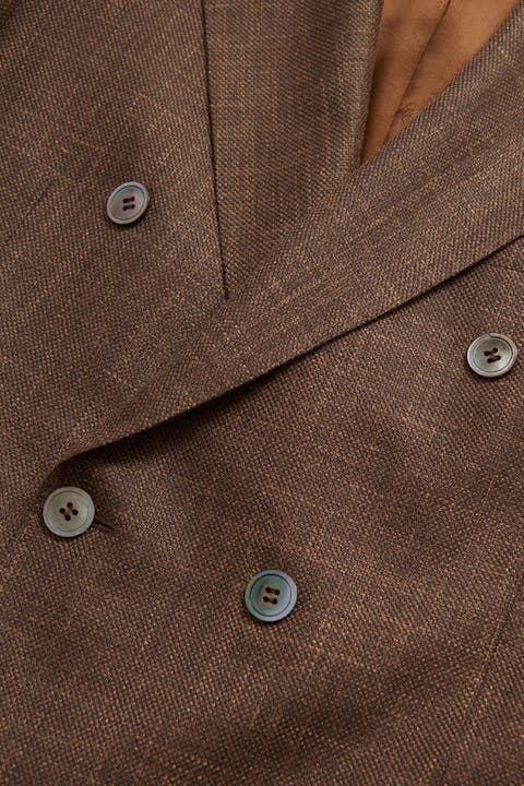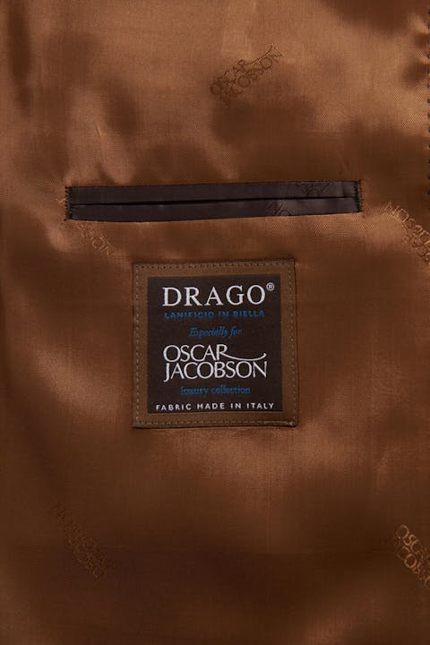 Dobbeltspent blazer i regular passform med spisse slag, ekstra mykt konstruert skulder, helfôret innside og klassiske lommer med lommeklaff. Laget av et eksklusivt stoff fra italienske veveriet Drago av ull, silke og lin.
