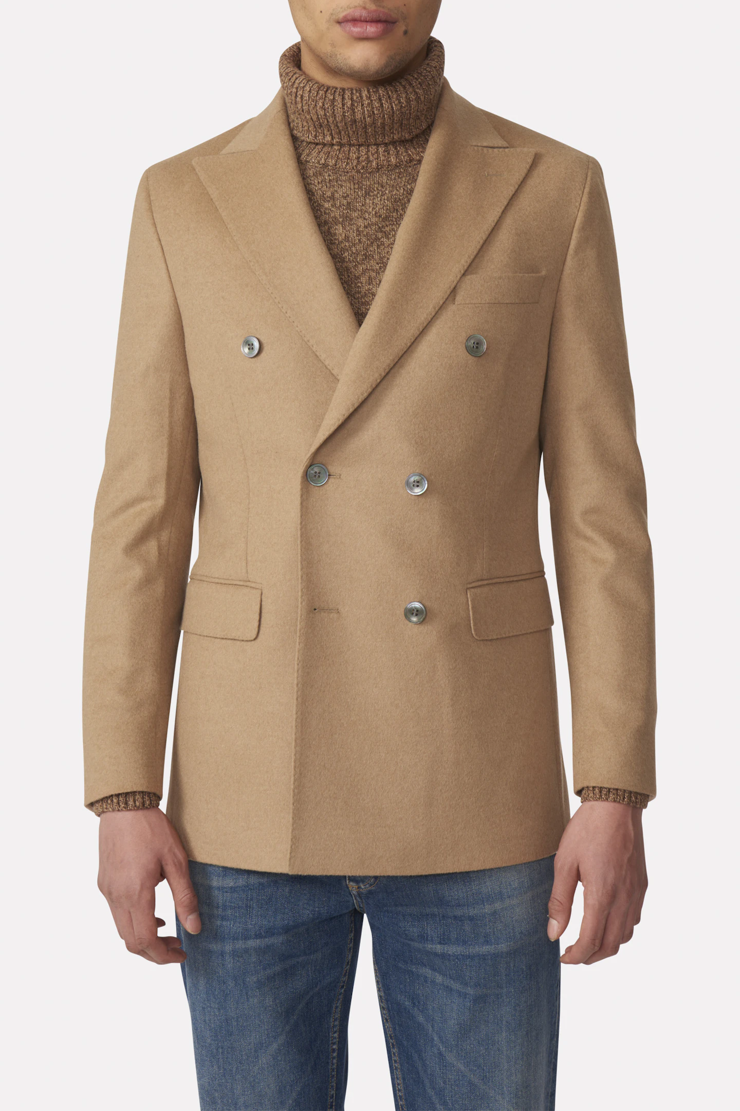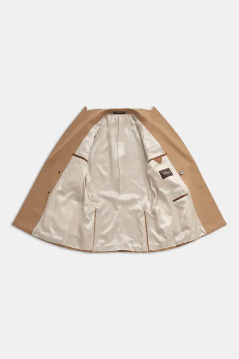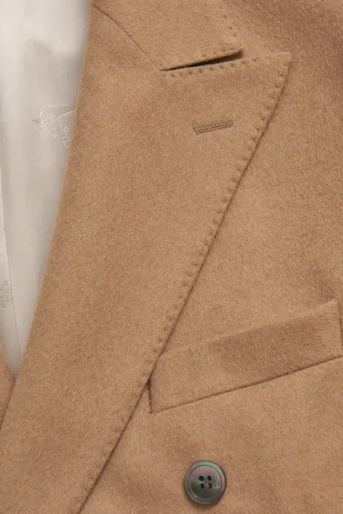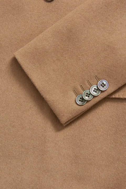 Farris blazeren er et tidløst plagg som utstråler sofistikasjon. Laget av 100% kamelhår, har denne dobbeltspent blazeren en børstet ullfinish i en klassisk kamelfarge.