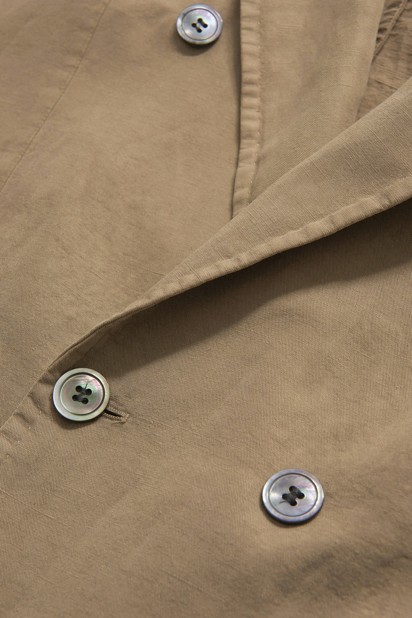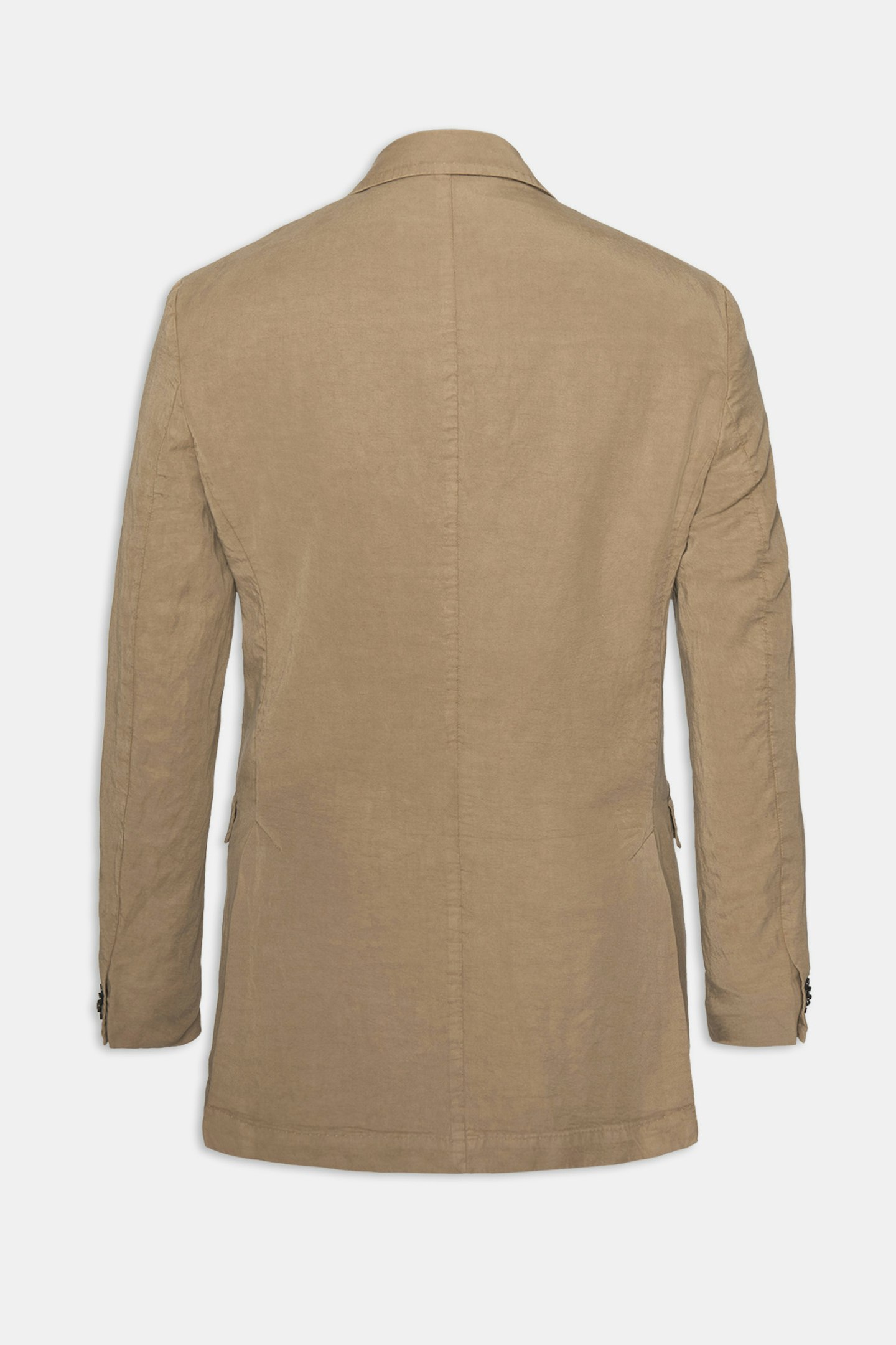 Vår dobbeltspente ukonstruerte blazer i lin og lyocell. Den ekstra lengden og det myke fallet gir en avslappet eleganse.