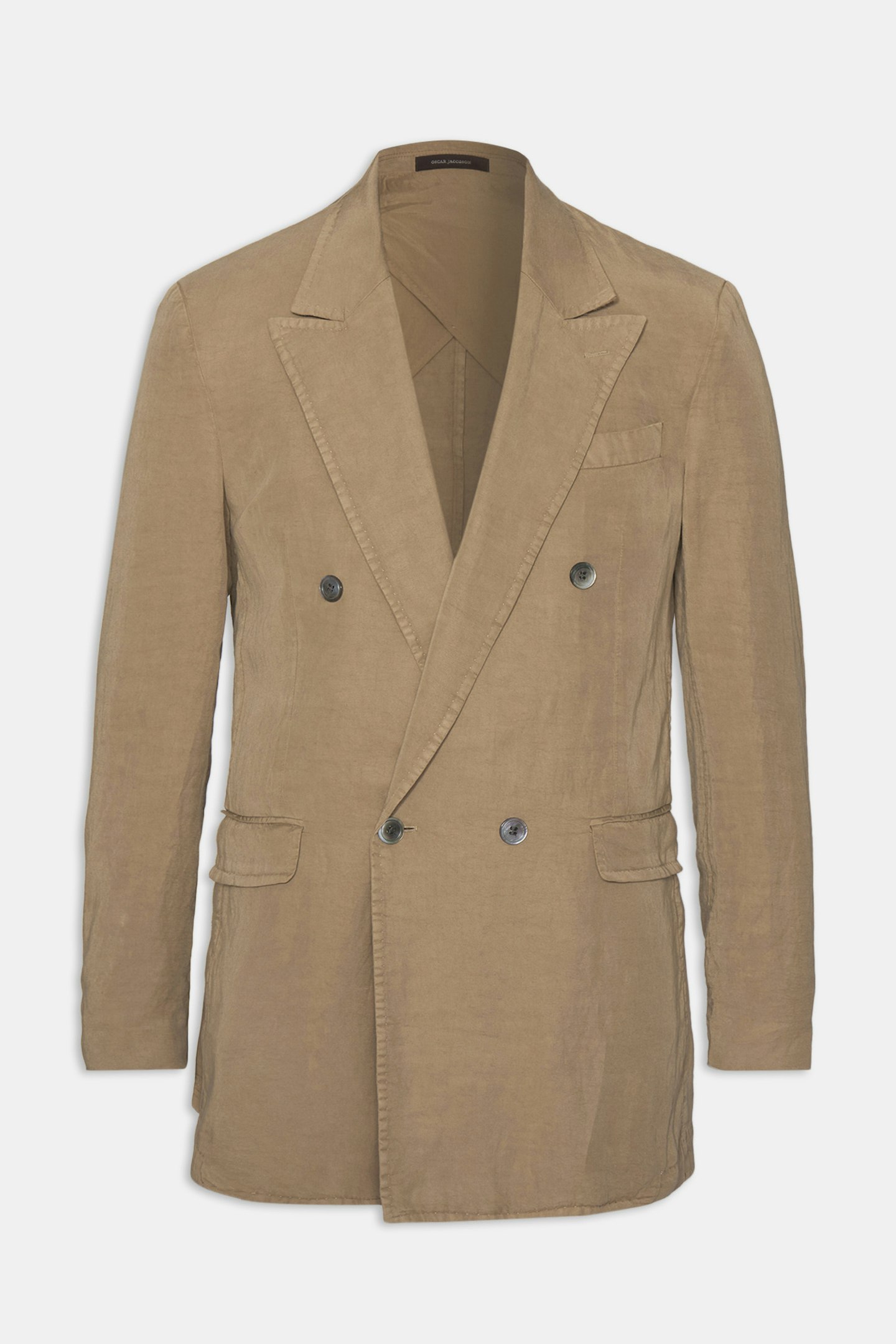 Vår dobbeltspente ukonstruerte blazer i lin og lyocell. Den ekstra lengden og det myke fallet gir en avslappet eleganse.