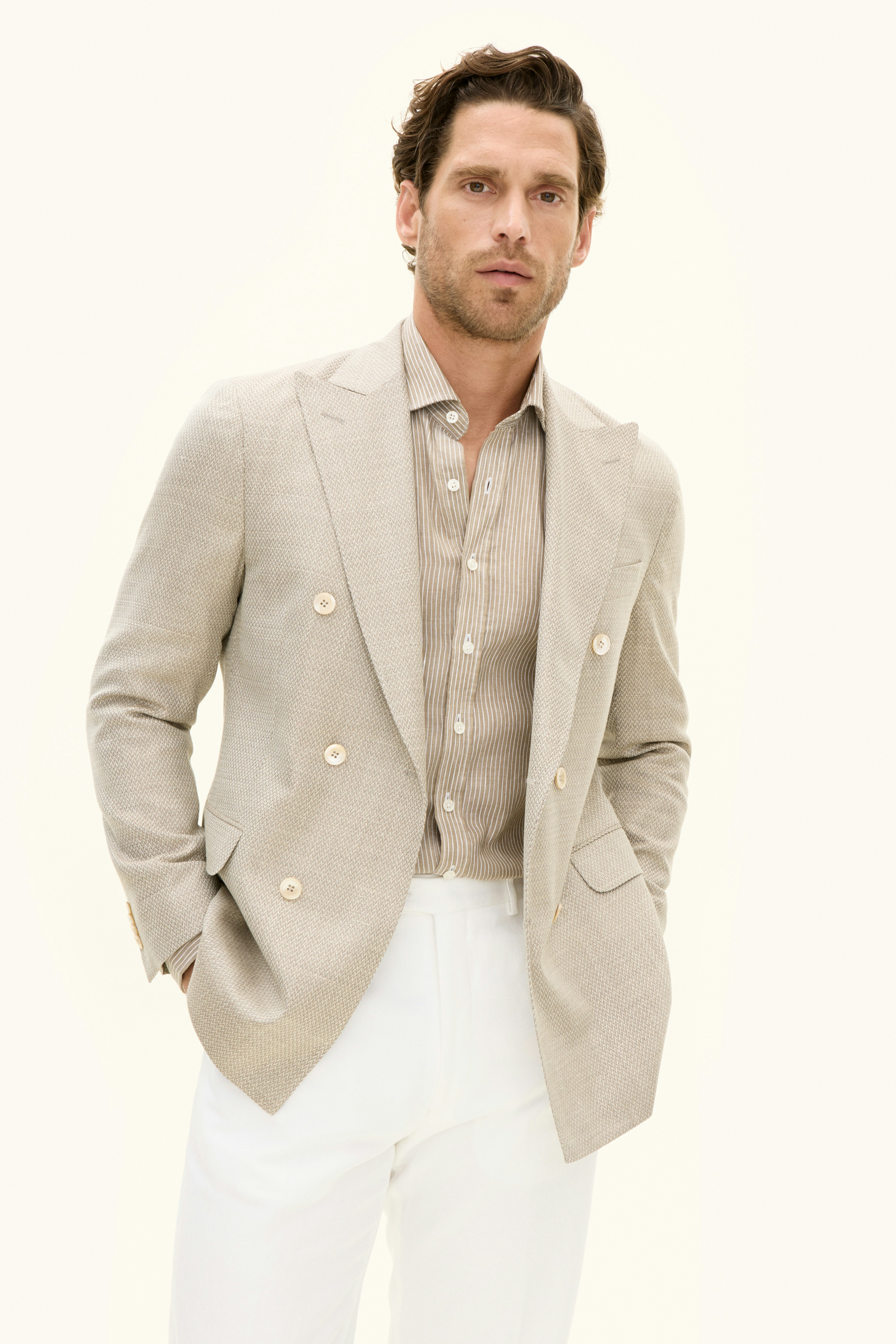 Regular Fit Dobbeltspent Blazer i Ull og Silke