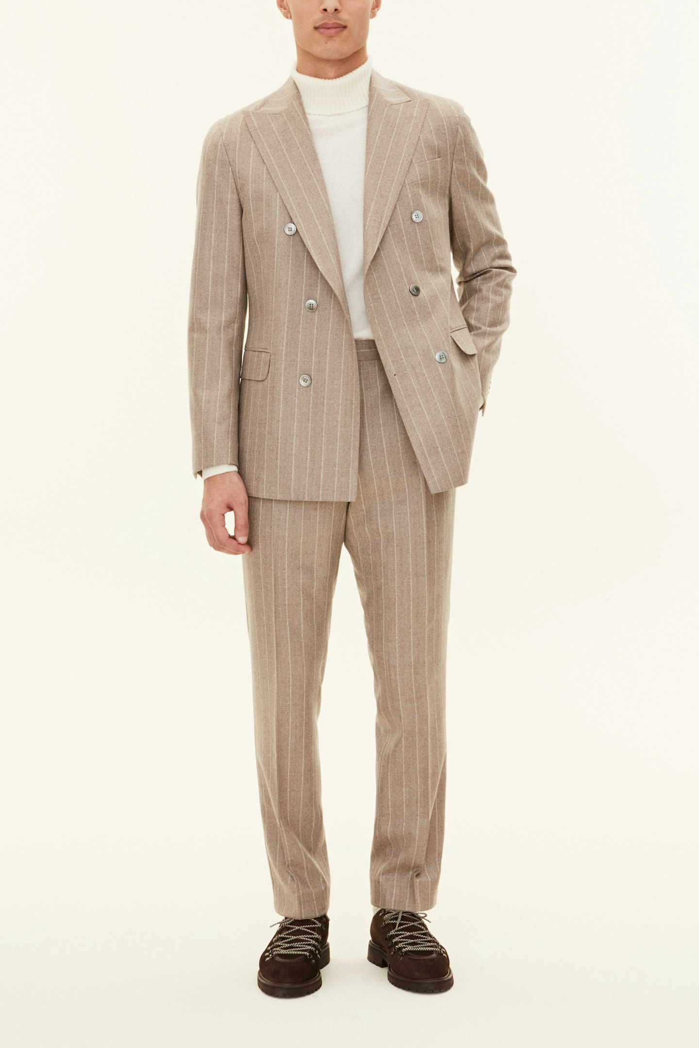 Dette produktet er laget av et stripet, vevd ullstoff fra Loro Piana.
