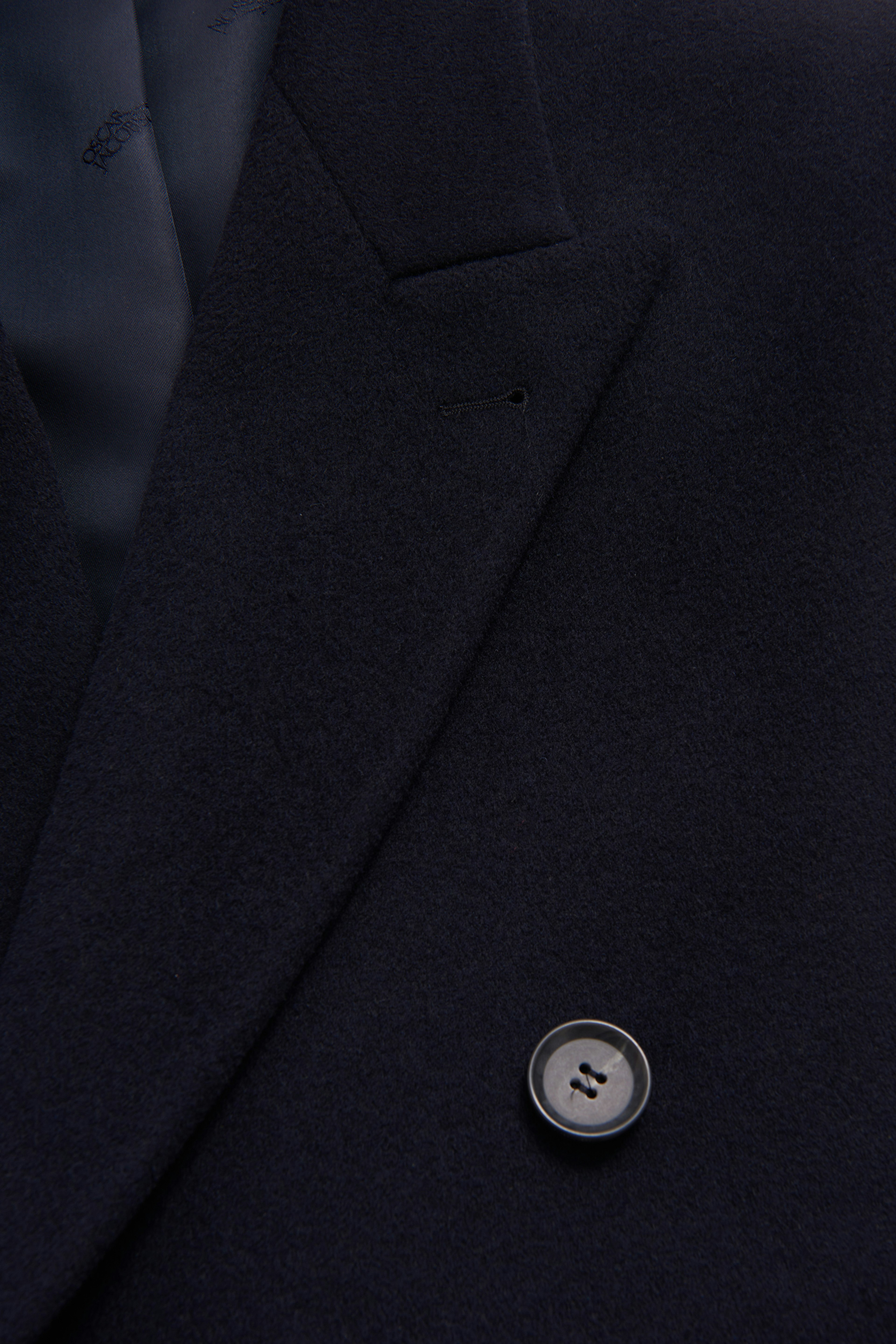 Vår nye dobbeltspente frakk med økt lengde for en mer klassisk look. Regular fit, med brede, spisse slag og doble innerlommer. Laget av et klassisk ullstoff blandet med kasjmir som gir en luksuriøs følelse.