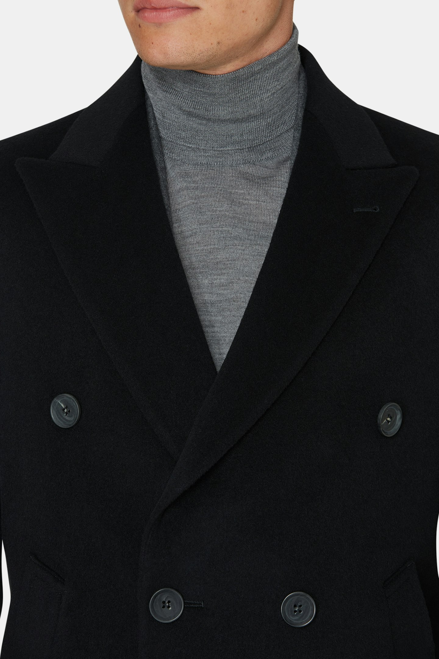 Vår nye dobbeltspente frakk med økt lengde for en mer klassisk look. Regular fit, med brede, spisse slag og doble innerlommer. Laget av et klassisk ullstoff blandet med kasjmir som gir en luksuriøs følelse.