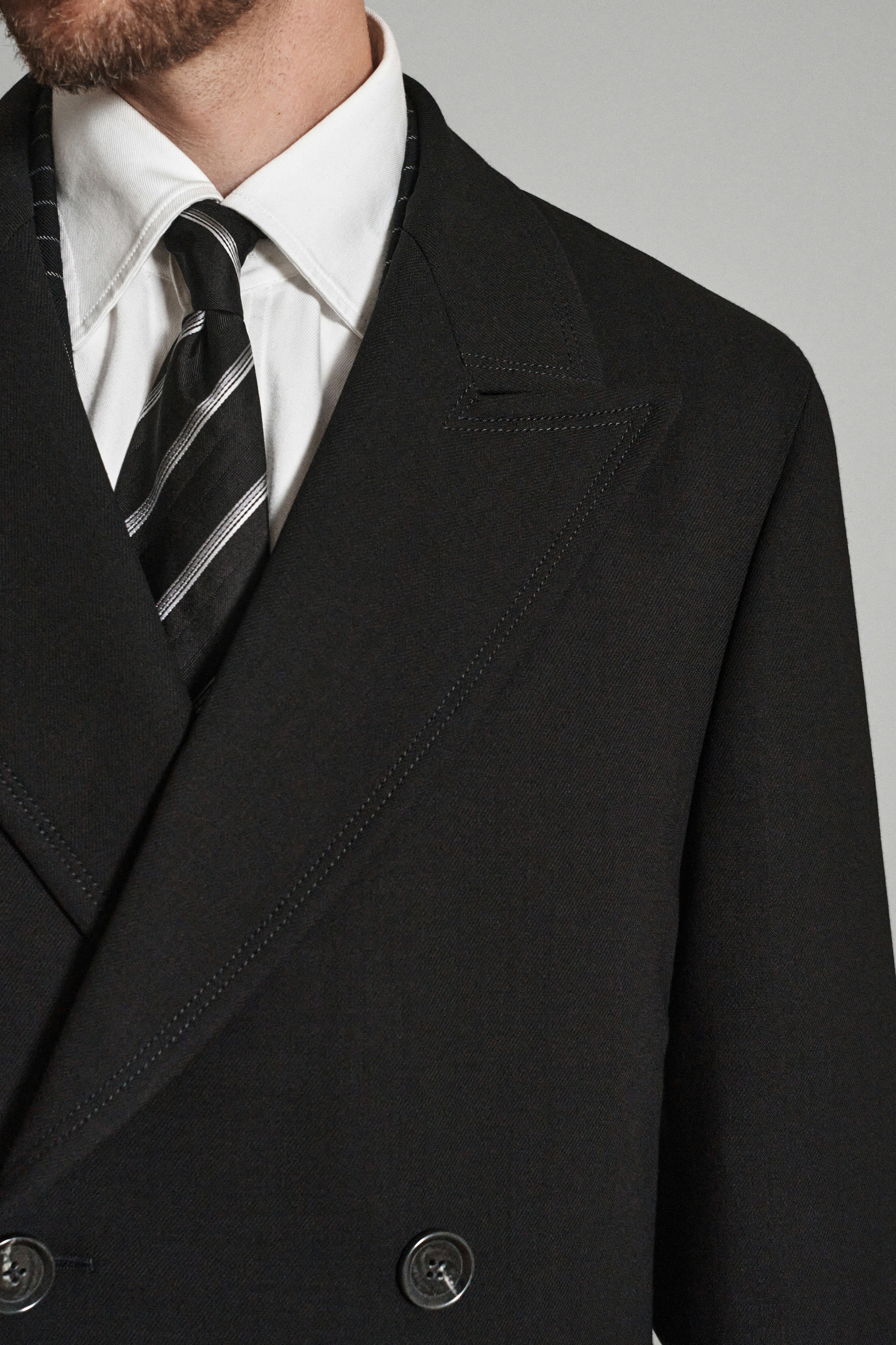 Dette produktet er en del av Oscar Jacobsons Legacy-kolleksjon, som har utspring i klassisk herremote og vår rike historie. Vi har hentet inspirasjon fra modeller i vårt omfattende arkiv og skapt moderne versjoner av eldre plagg, der vi kombinerer moderne stoffer og tekniske løsninger met et historisk utrykk. Dobbeltspent frakk laget i en tung ullkvalitet fra det tradisjonsrike italienske veveriet Marzotto. Snittet henter inspirasjon fra vårt over hundre år gamle arkiv, men er gjenskapt med moderne proporsjoner og nøye avstemte detaljer som gir et oppdatert uttrykk. Et plagg som forener skreddertradisjon med moderne form.