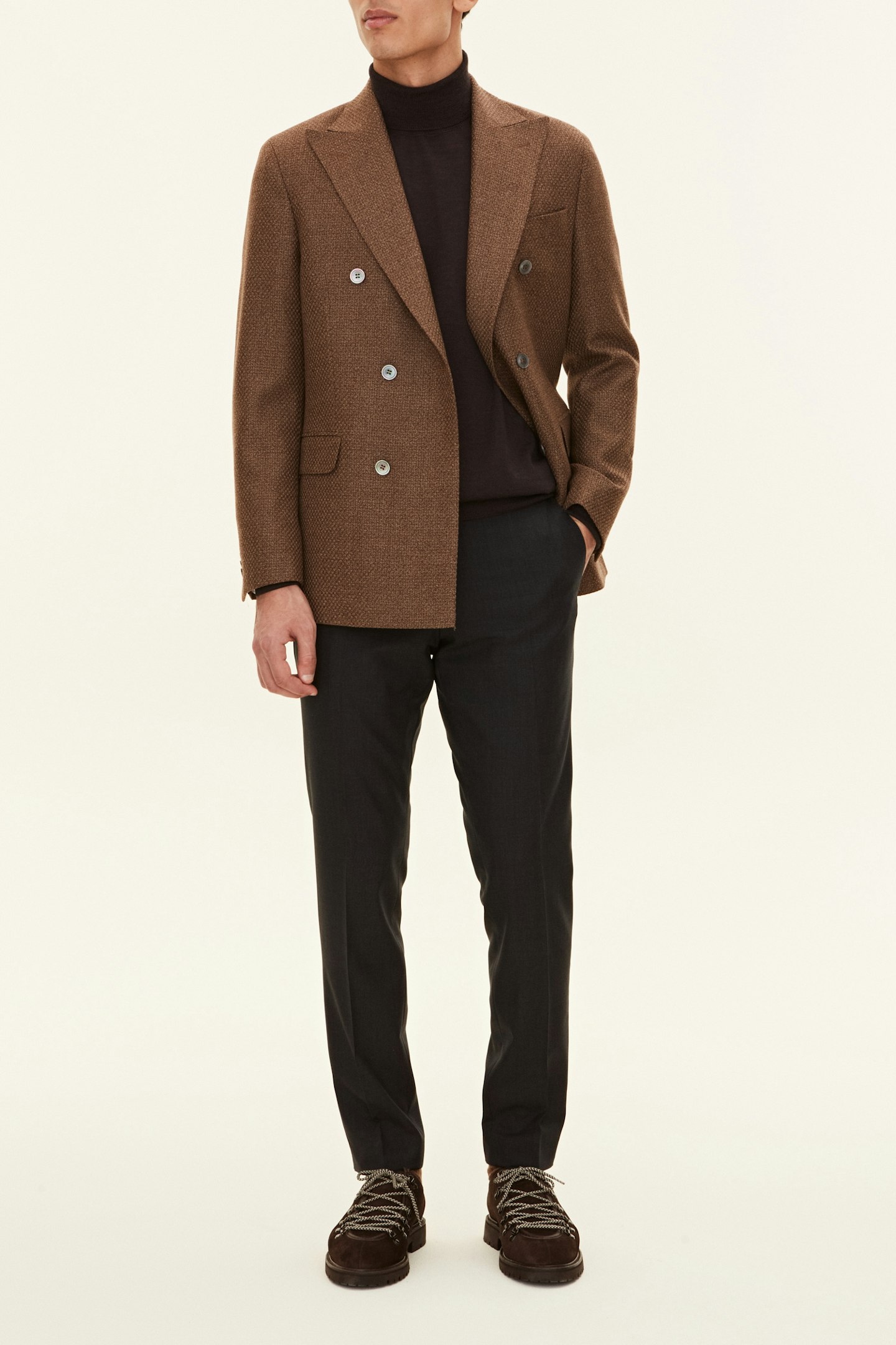 Dette produktet er laget av et ensfarget, vevd ullstoff fra Lanificio di Pray s.p.a.