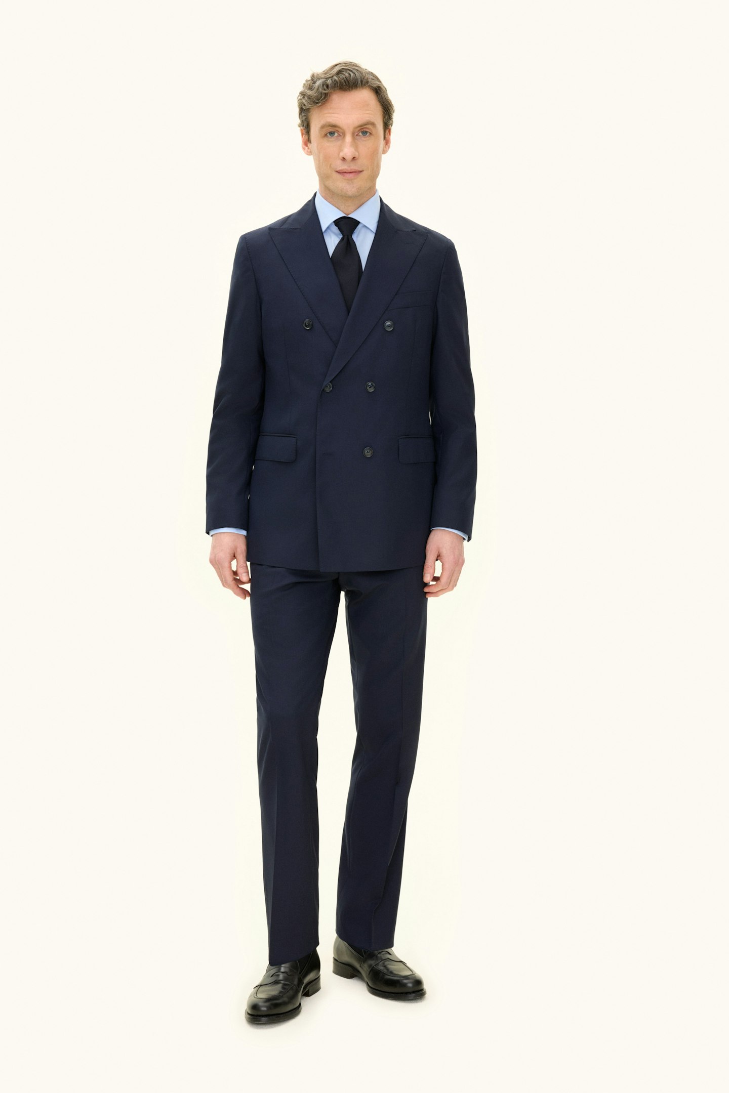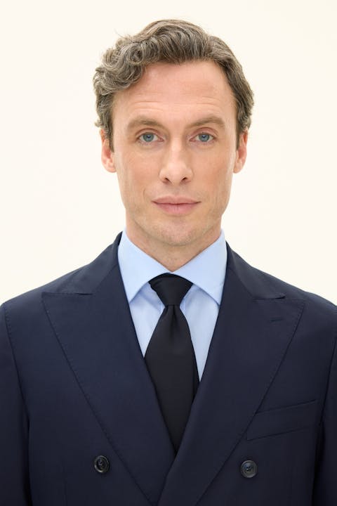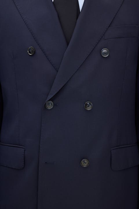 Klassisk dobbeltspent blazer i normal passform med spisse jakkeslag og mykt formet skulder. Laget i glatt Super 120's ull.
