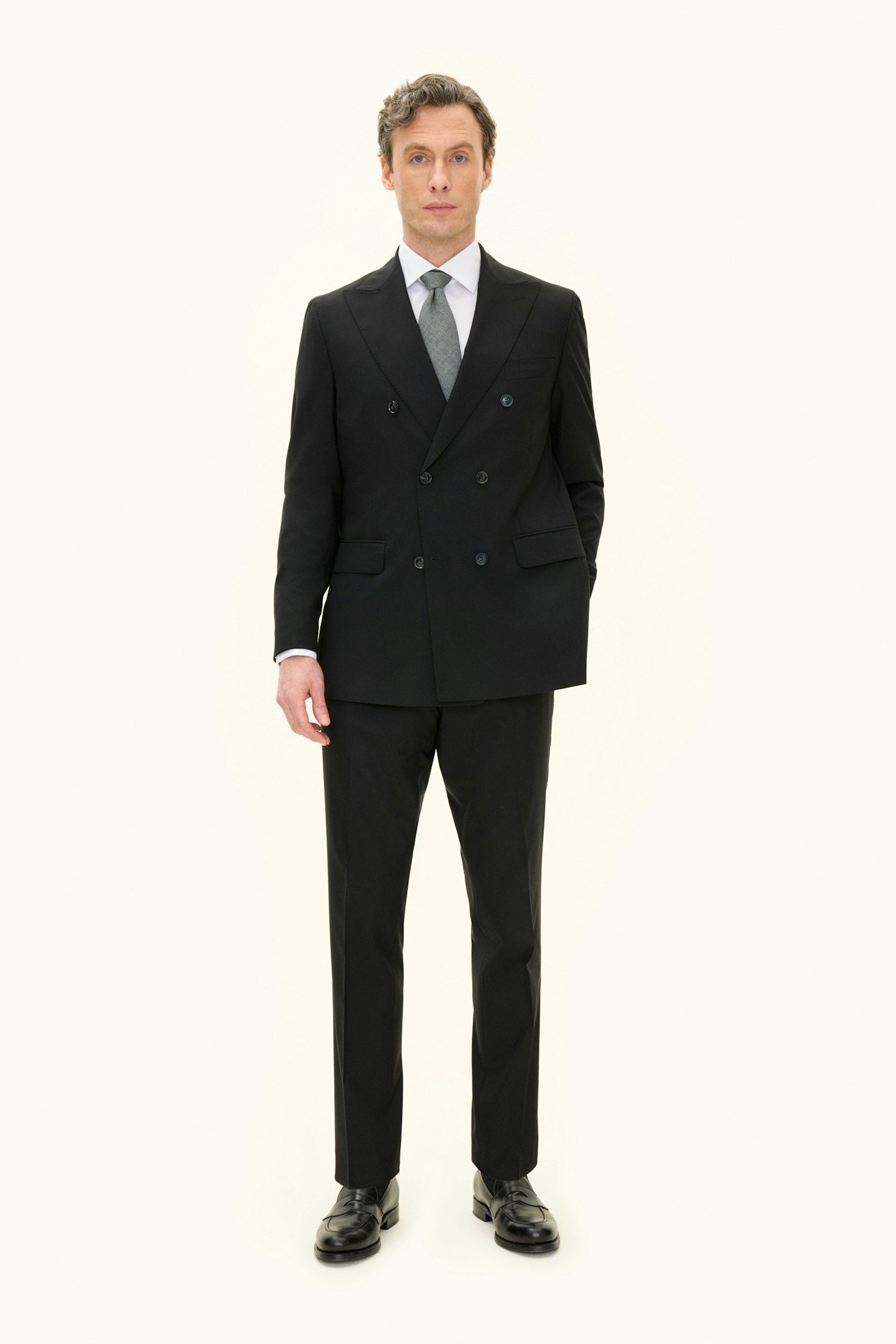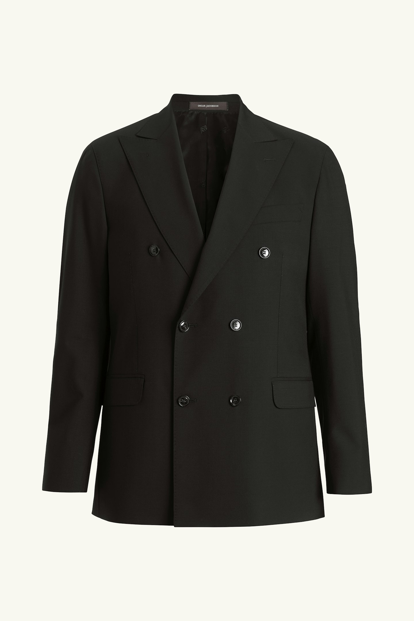 Klassisk dobbeltspent blazer i normal passform med spisse jakkeslag og mykt formet skulder. Laget i glatt Super 120's ull.