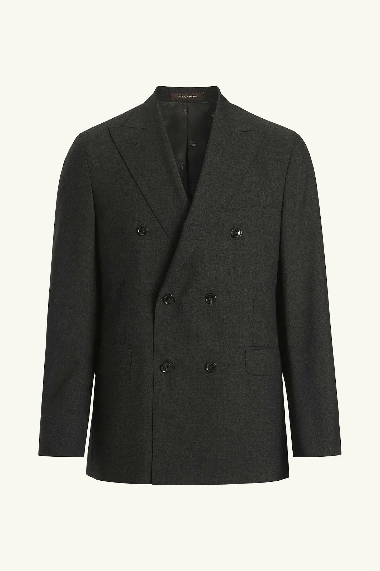 Klassisk dobbeltspent dress i regular fit med spisse slag og mykt konstruerte skuldre. Laget av glatt Super 120'S ull fra veveriet Vitale Barberis Canonico. Buksen har en klassisk passform som smalner av mot foten og en klassisk bukselengde som akkurat berører skoen.