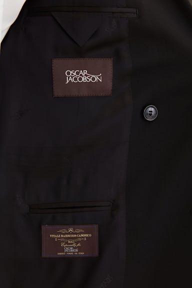 Klassisk dobbeltspent dress i regular fit med spisse slag og mykt konstruerte skuldre. Laget av glatt Super 120'S ull fra veveriet Vitale Barberis Canonico. Buksen har en klassisk passform som smalner av mot foten og en klassisk bukselengde som akkurat berører skoen.