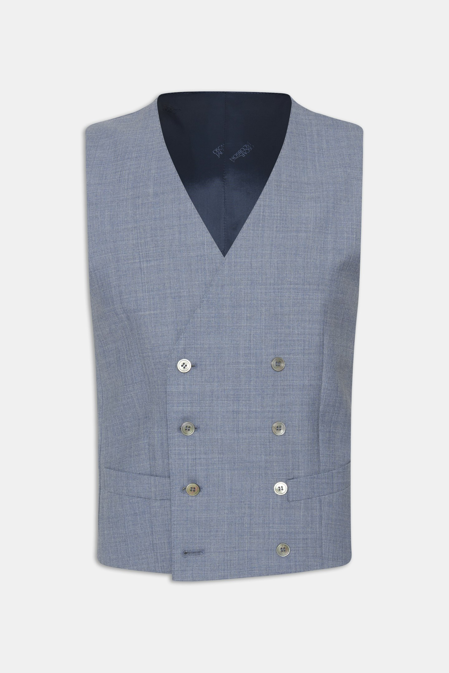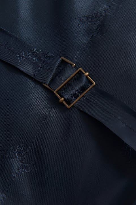 Dobbeltspent vest med normal passform og rett fasong. Satengkledd rygg, og kledd med en spenne.