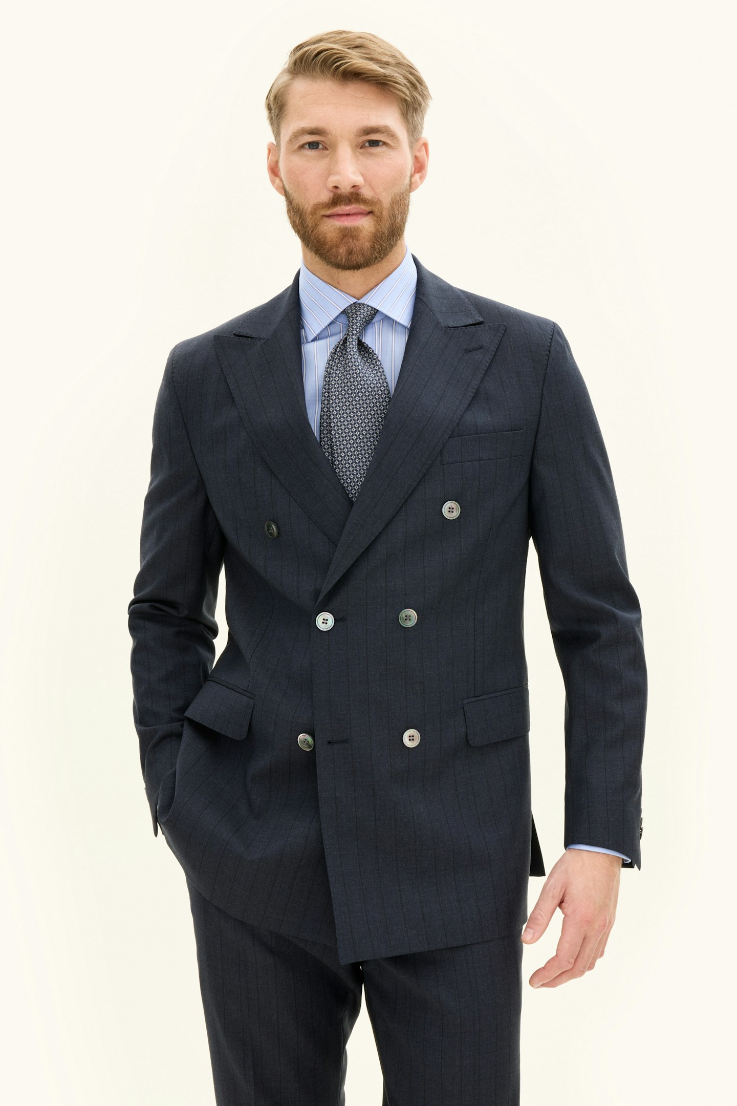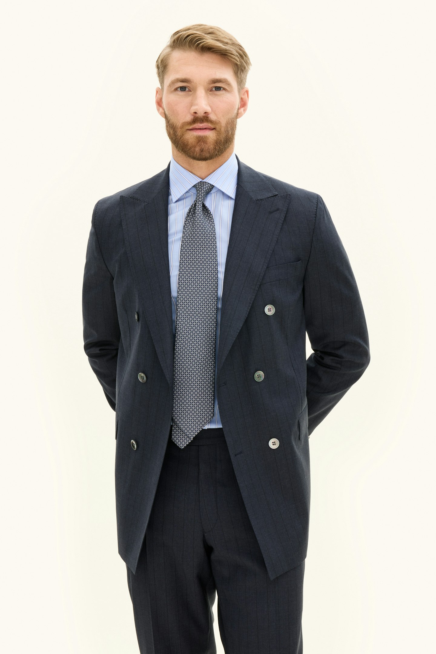 Regular Fit Dobbeltspent Stripete Ull Blazer