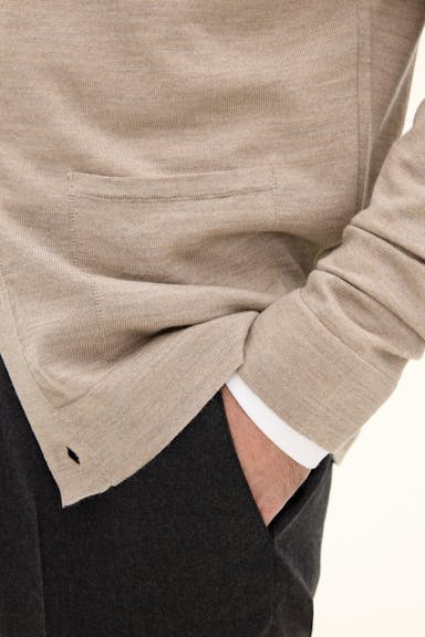 Denne cardiganen har en regular-fit passform og er laget av myk 100 % jomfruull, som gir en smidig følelse uten at det går på bekostning av elegansen. Med sin diskré karakter og stilige uttrykk fungerer den like bra til formelle anledninger som til hverdagsbruk.