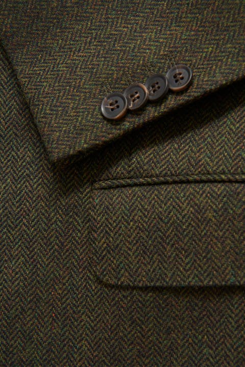 Helfôret tweedblazer med mykt formet bryst- og skulderparti. Passformen er moderne skreddersydd, men har en romslig passform sammenlignet med våre smaleste modeller. Dress av 100% ull med elegant fiskebeinsstruktur.