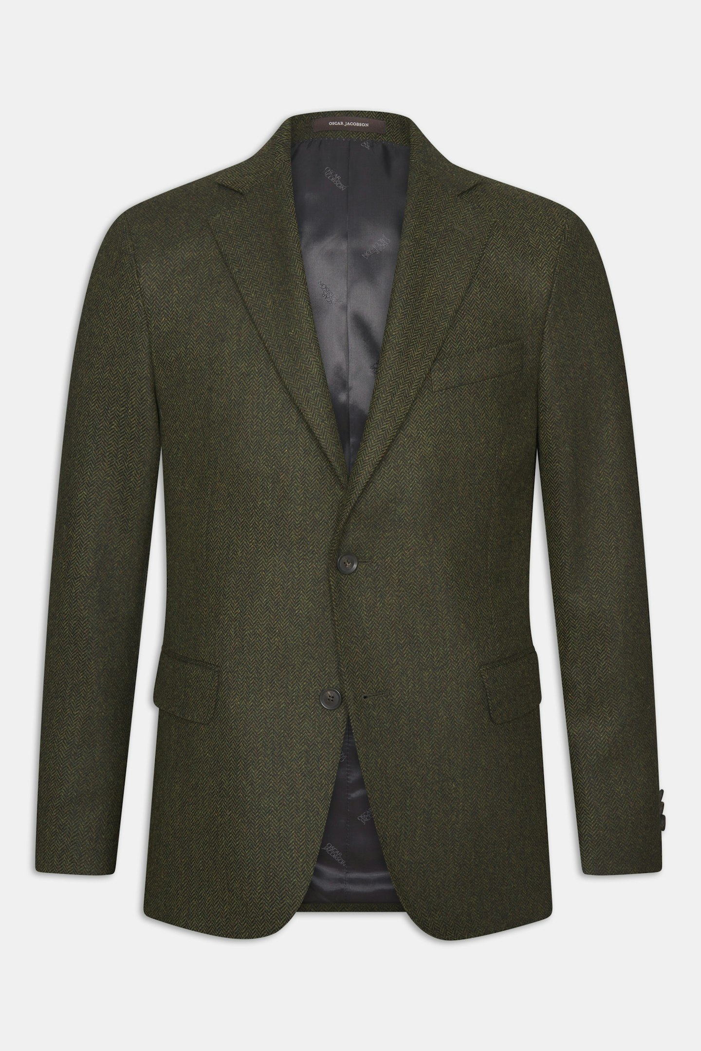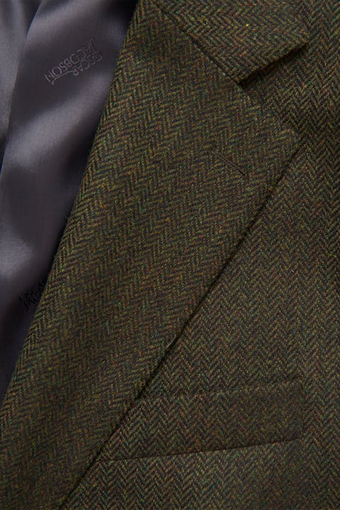 Helfôret tweedblazer med mykt formet bryst- og skulderparti. Passformen er moderne skreddersydd, men har en romslig passform sammenlignet med våre smaleste modeller. Dress av 100% ull med elegant fiskebeinsstruktur.