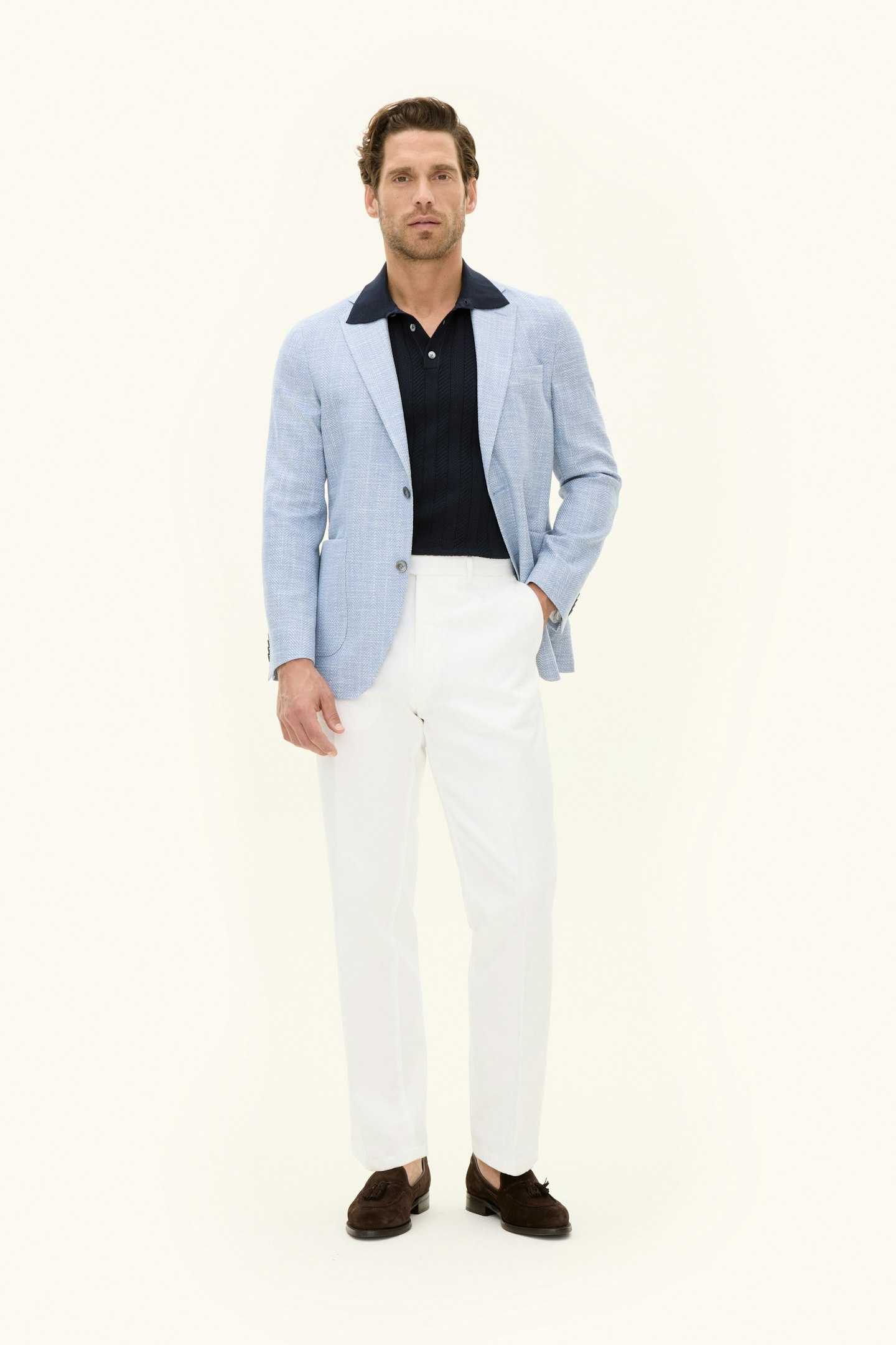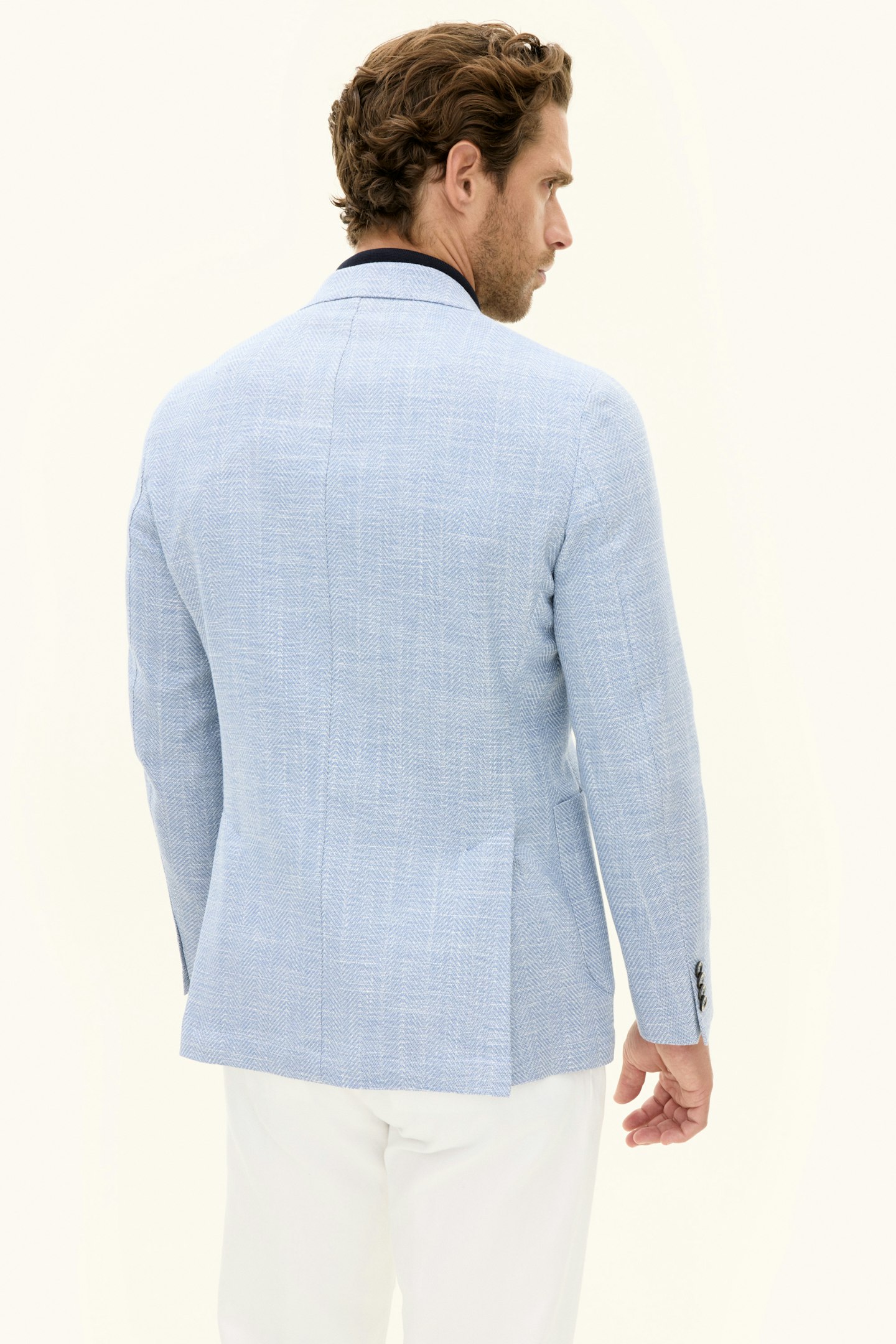 Laget av en myk bomullsblanding, har denne blazeren en regular fit. Den er designet med et tidløst fiskebensmønster og laget med vevd konstruksjon. En moderne klassiker som balanserer stil og komfort.